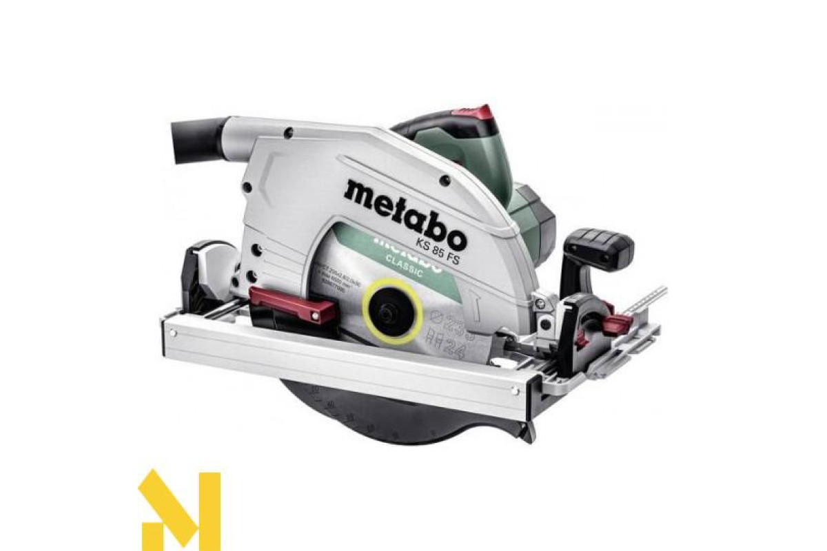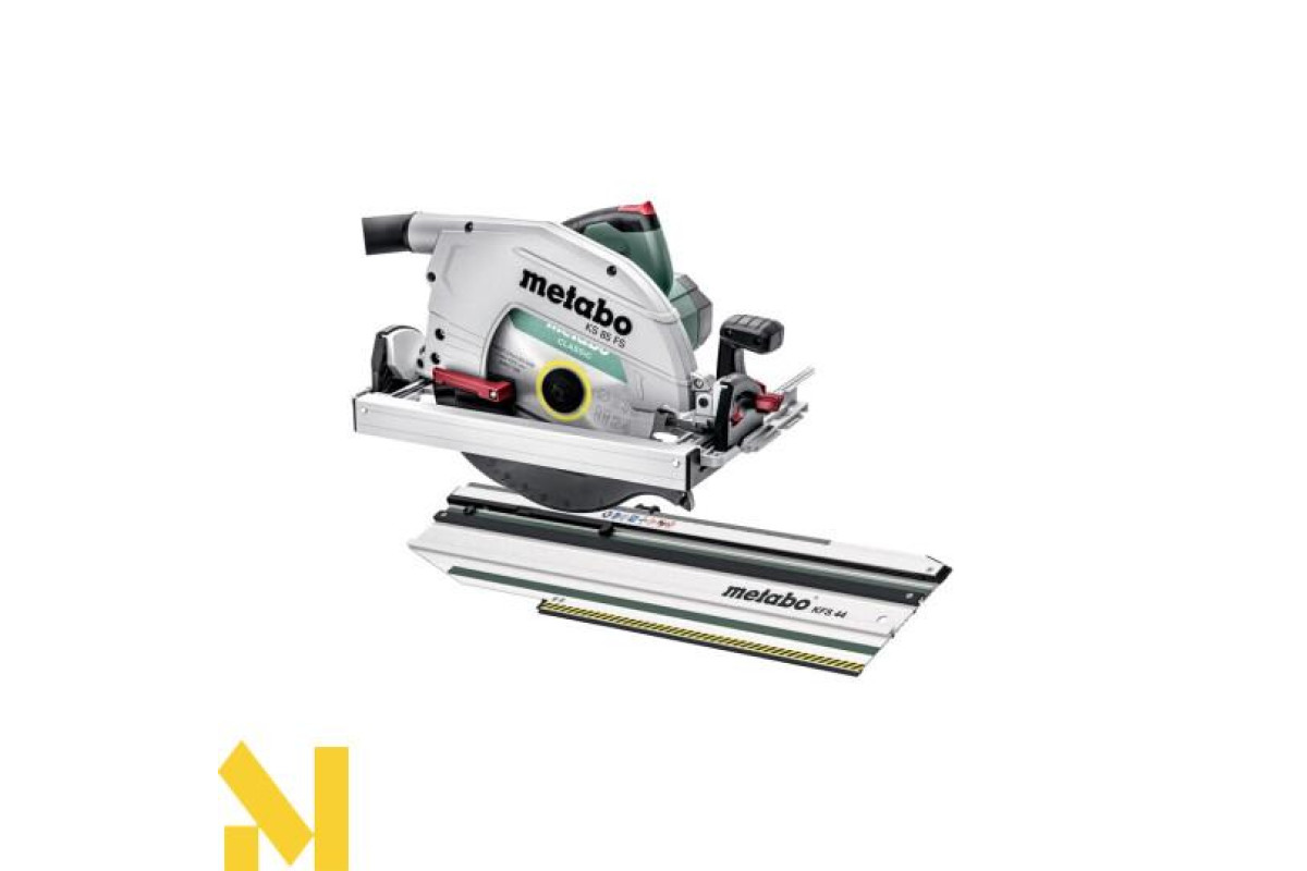 Metabo KS 85 FS + KFS 44 - це міцна дискова пилка з потужним двигуном Потужність 2000 Вт. Легка і міцна лита підошва з алюмінієвого сплаву, дозволяє виконувати точні різи. Завдяки спеціальній формі підошви, дана модель встановлюється не тільки на шини Metabo, але і на шини інших виробників (MAKITA, HIKOKI, HILTI, BOSCH) .Пила Metabo KS 85 FS має можливість плавного регулювання кута нахилу підошви до 48 ° с добре читається шкалою і без застосування додаткових інструментів. Дискова пилка обладнана блокуванням шпинделя, який дозволяє швидко міняти оснастку.