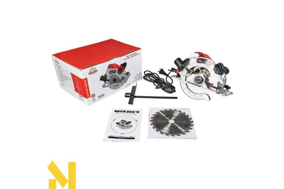 Комплектується ручна циркулярна пилка Vitals Master Rg 1915HFIa відрізним диском на 24 зуби для виконання швидкого розпилювання заготівлі. Мережевий кабель пилки прогумований і його довжина становить 3 метри.