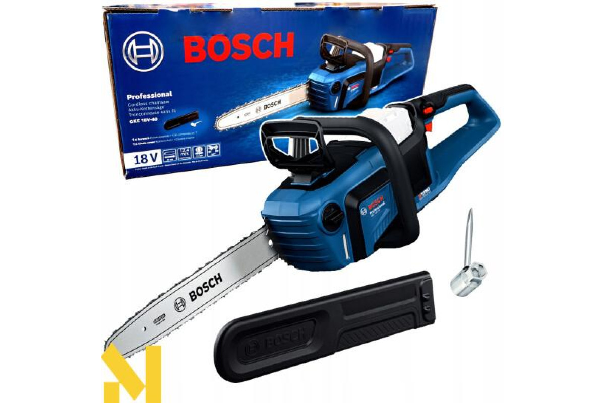 Bosch GKE 18V-40 — це професійна акумуляторна ланцюгова пила, яка входить до лінійки Bosch Professional і призначена для задоволення потреб тих, хто шукає потужності та точності під час різання. Завдяки джерелу живлення від батареї 18 В він ідеально підходить для мобільного використання без незручностей кабелів, водночас пропонуючи високу продуктивність різання навіть на складних матеріалах. Ця версія поставляється лише в корпусі, ідеально підходить для тих, хто вже має інші інструменти Bosch з тієї ж лінії.