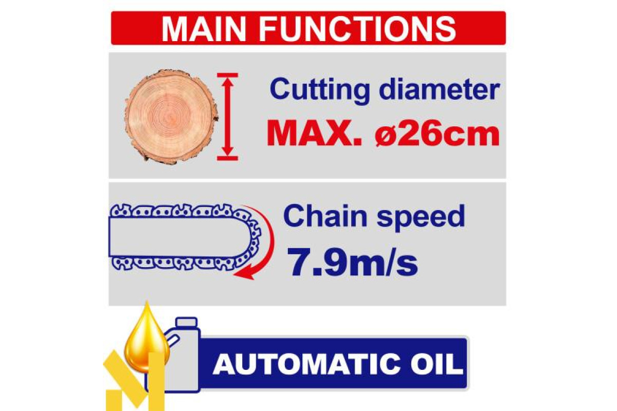 - ОсобливостіАвтоматична змазка ланцюга