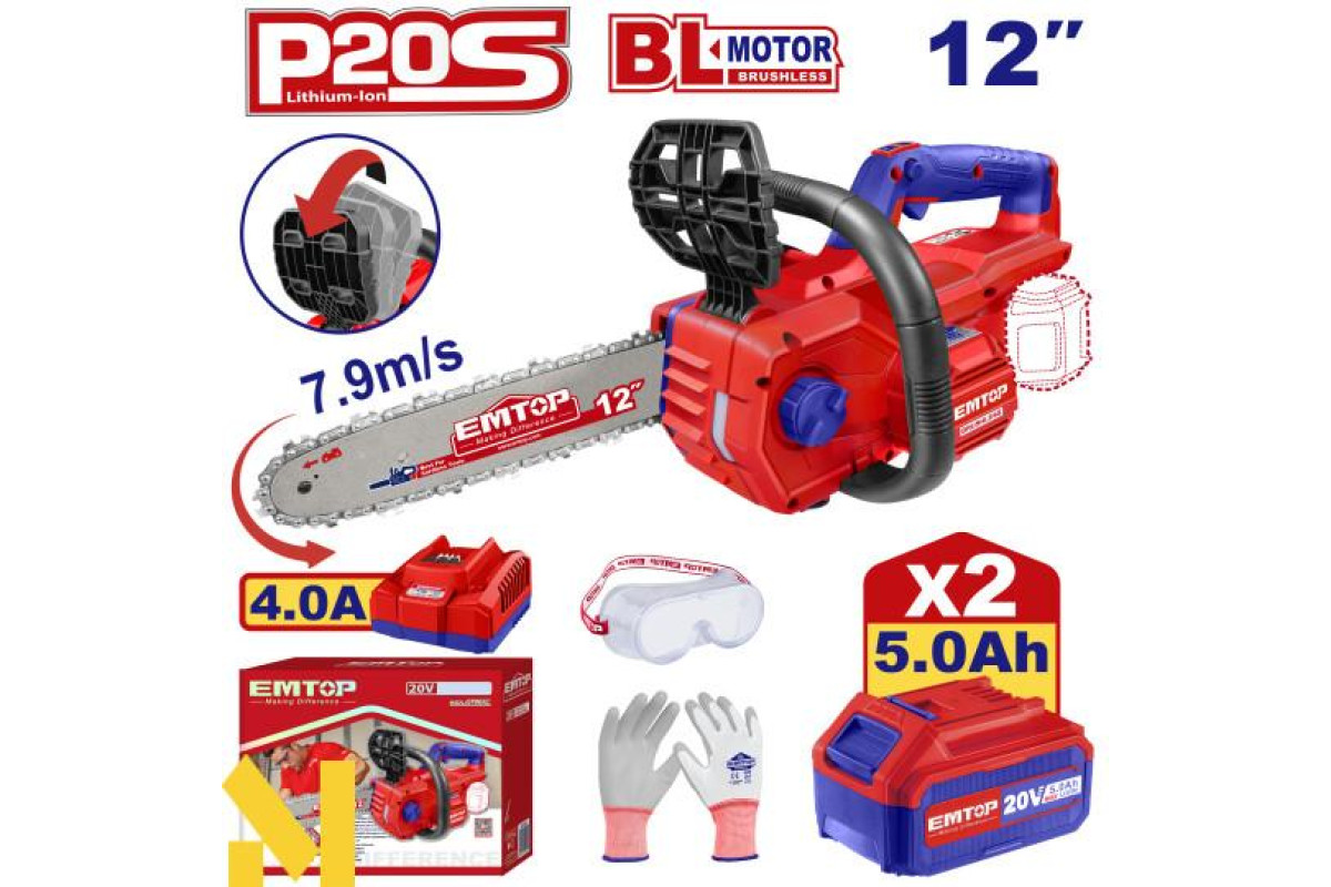 Пила ланцюгова акумуляторна EMTOP ELGA201286