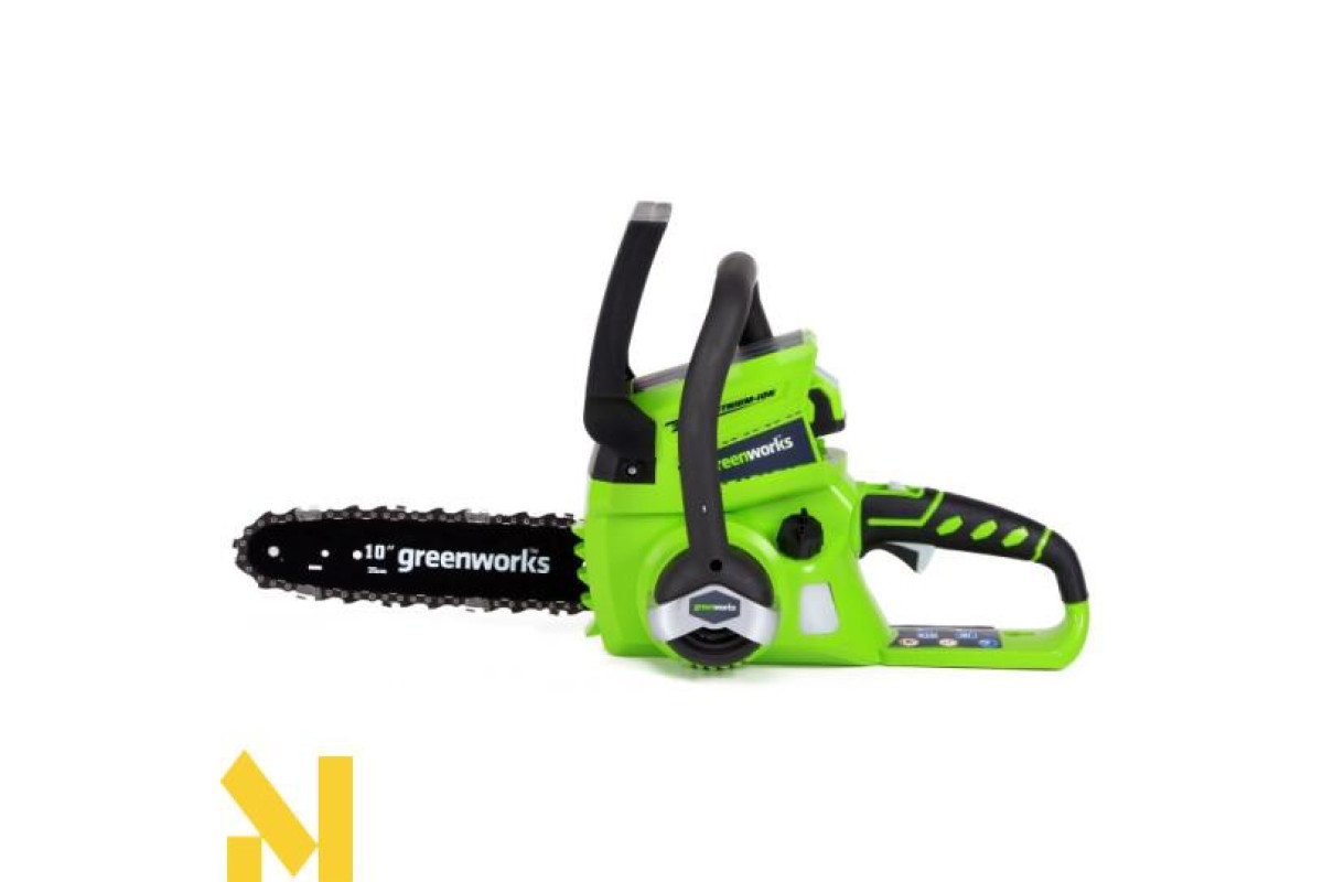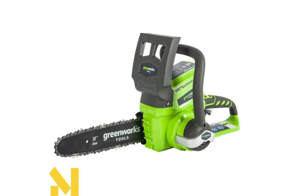 Ланцюгова акумуляторна пила GreenWorks G24CS25 — невелика, легка садова пила. Це відмінний вибір для підрізування товстого чагарнику або сучків, пиляння колод, а також підійде рибалкам, мисливцям і любителям походів.