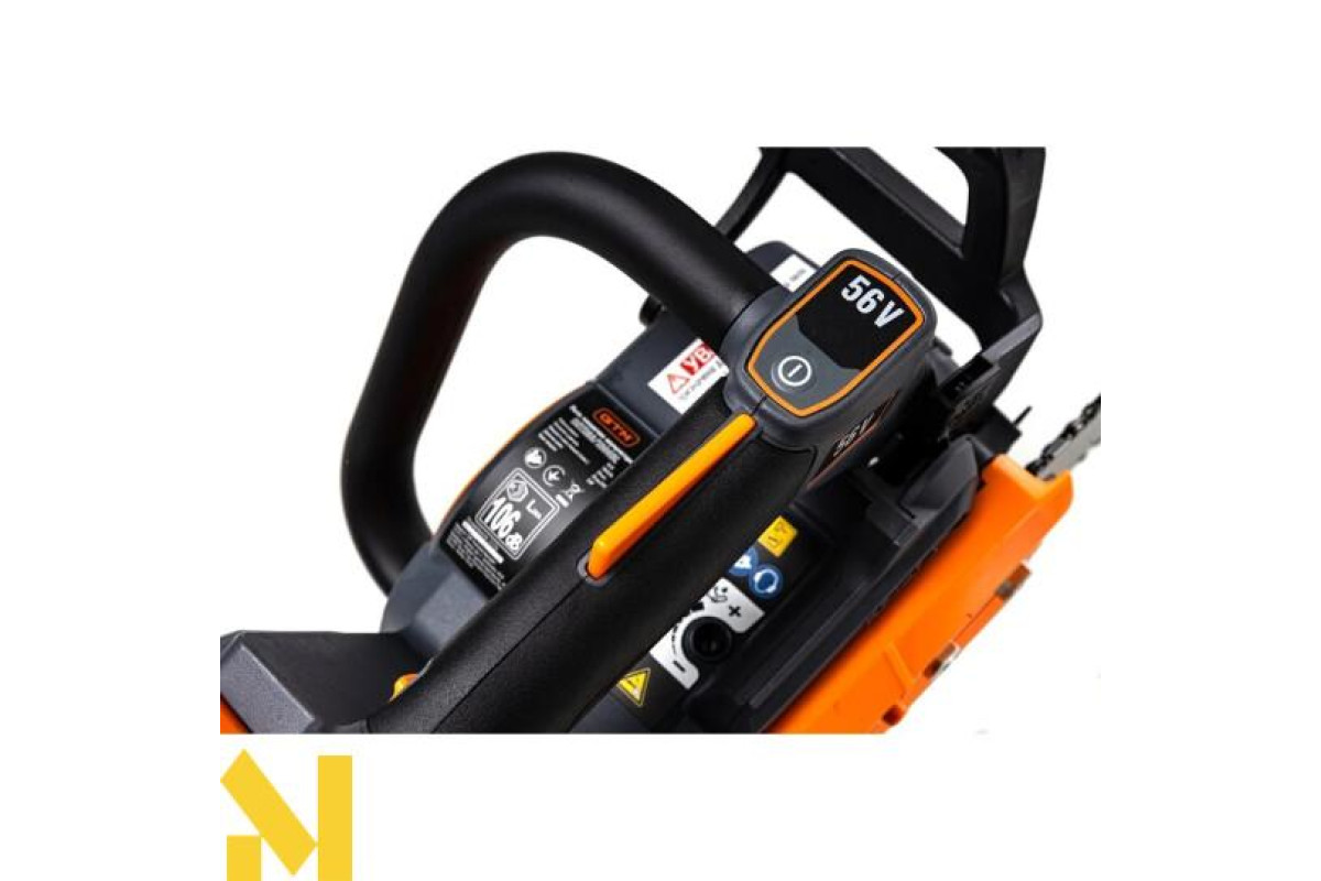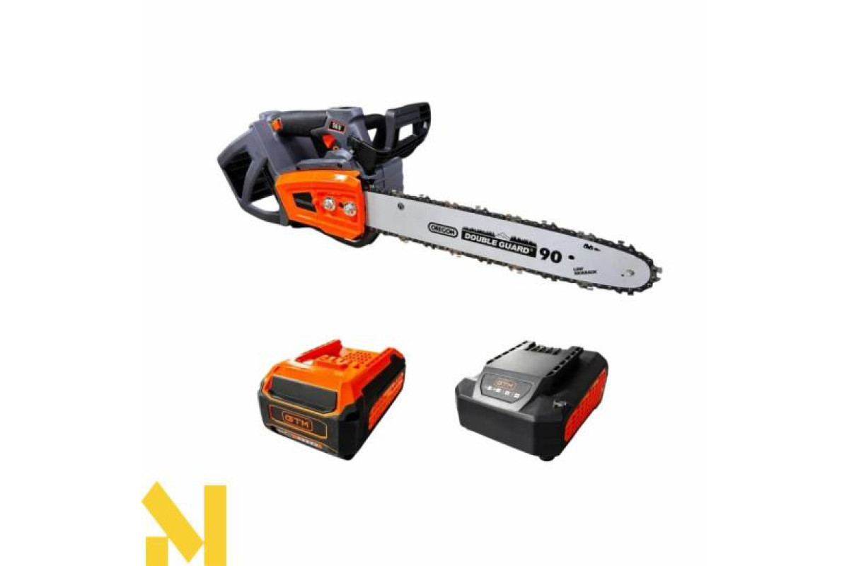 GTM CSTH56/1800BL - компактна та потужна акумуляторна ланцюгова пила професійного класу, яку розробили для обрізки дерев і кущів, а також садово-паркових робіт. Інструмент обладнаний безщітковим електричним двигуном, який живиться від стандартних акумуляторів GTM 56 В. Пила комплектується шиною довжиною 35 см і фірмовим ланцюгом Oregon.