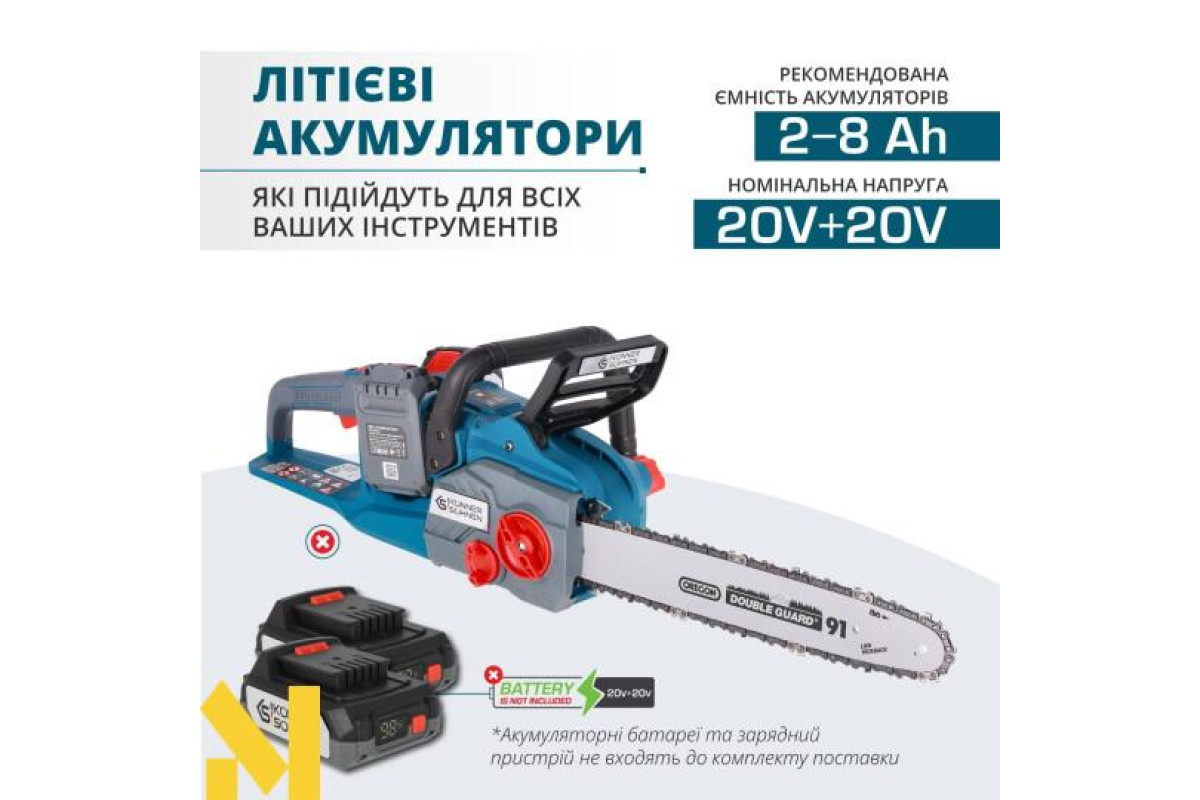 Акумуляторні пили працюють на літій-іонних акумуляторах 20В, які забезпечують тривалу роботу, а відсутність кабелю - легкість у використанні у важкодоступних місцях, віддалених від центральної електромережі. Акумулятори характеризуються високою ефективністю, швидкою зарядкою та мінімальною втратою заряду в режимі очікування.