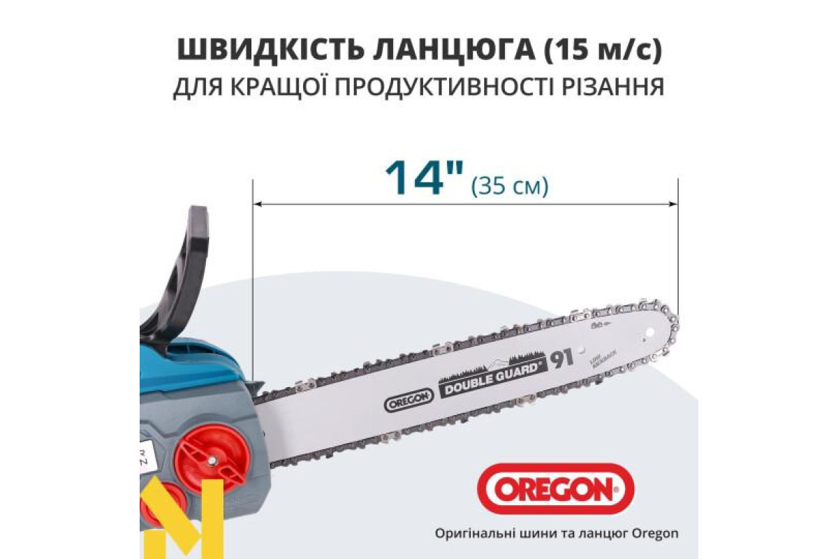 Спеціальне гумове покриття на задній ручці забезпечує надійне тримання та впевнене керування ланцюговою пилою.
