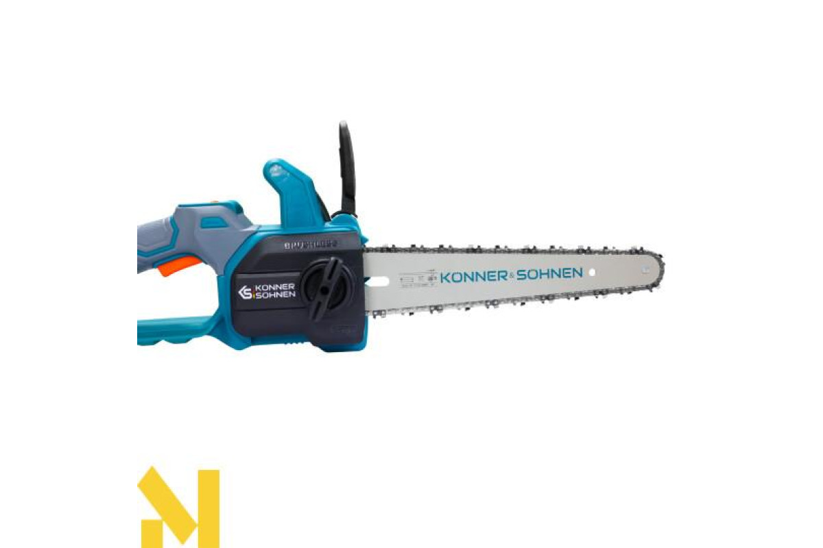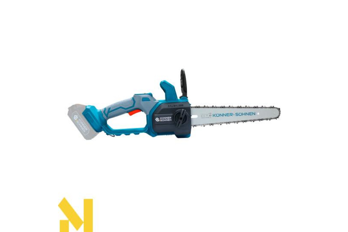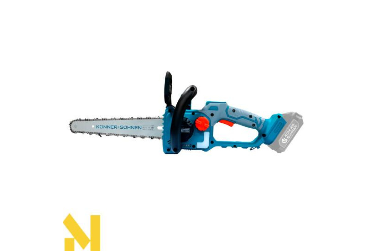 Акумуляторна мініпила KS MCS20V-12 - німецької торгової марки Könner & Söhnen поєднує потужність, мобільність і комфорт. Безщітковий двигун забезпечує високу продуктивність і довговічність, а акумулятор дозволяє працювати без кабелю. Швидкість ланцюга та шина роблять її універсальною для обрізки гілок, заготівлі дров та столярних робіт. Збалансований дизайн, мала вага й ергономічна кругова рукоятка знижують втому під час роботи. Подвійний захист, кнопка-запобіжник і петля для ременя гарантують безпеку, а механізм натягу ланцюга «без інструментів» та автоматичне змащення спрощують обслуговування:
