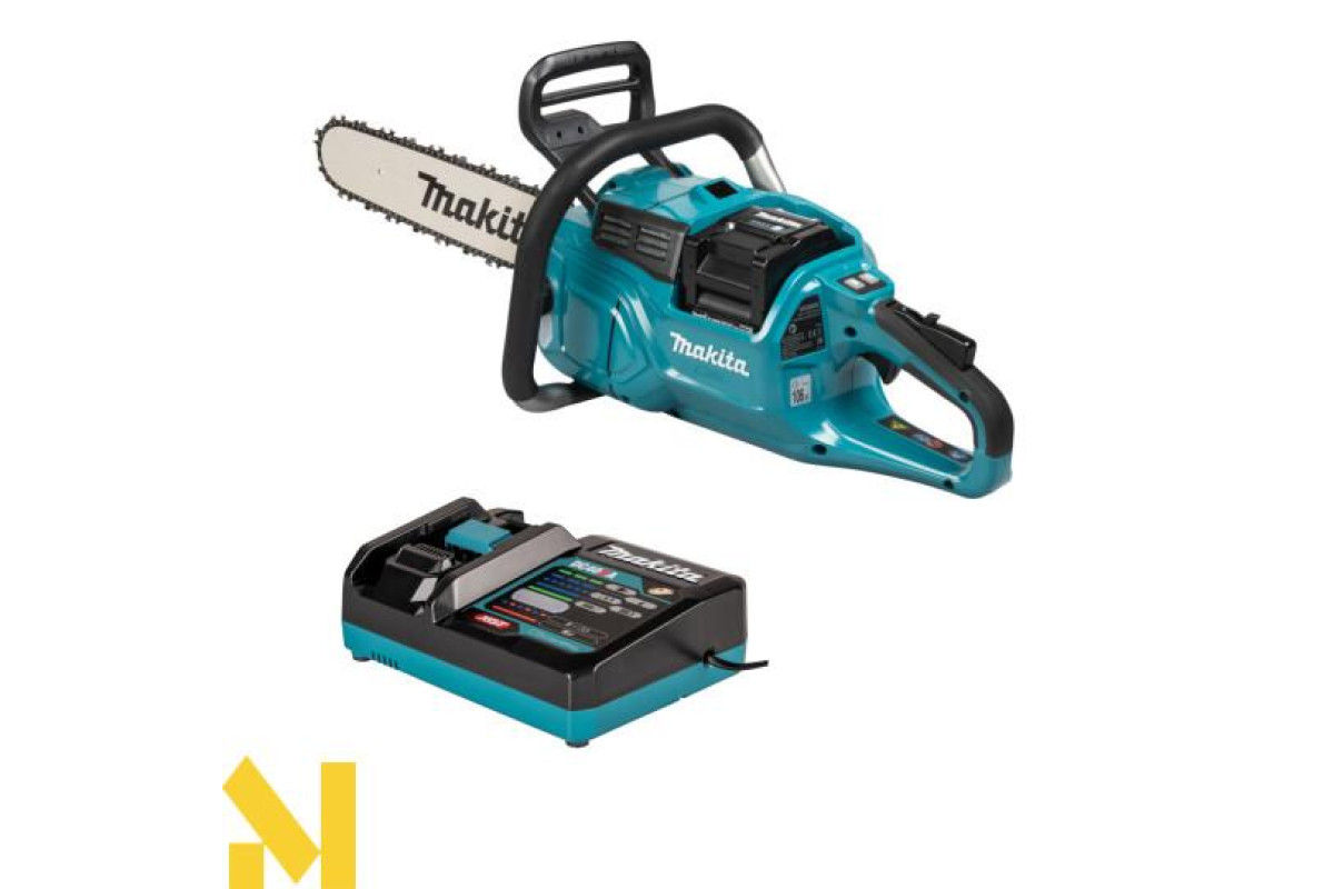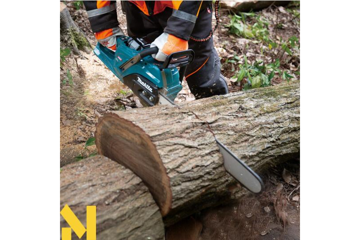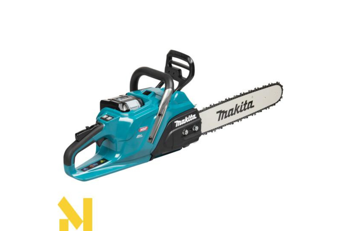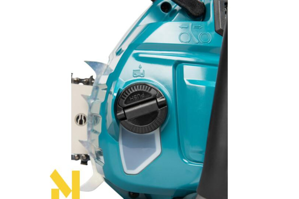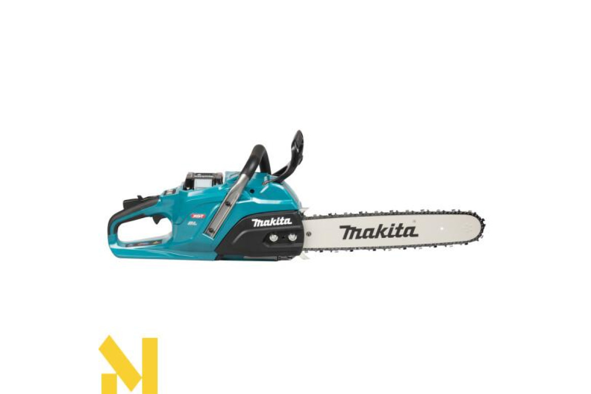 З продуктивністю, подібною до бензинової бензопили об'ємом 50 куб.см (з акумулятором BL4080H). Доступна в синьому або помаранчевому кольорі Makita. Призначена для обрізки дерев з діаметром стовбура приблизно 400 мм. Технологія XPT забезпечує підвищену стійкість до пилу та вологи. Має регульовану автоматичну систему змащування ланцюга.