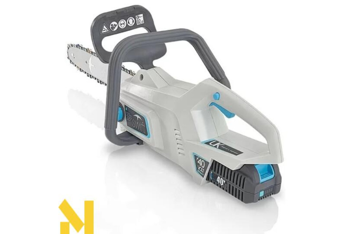 Ланцюгова пила SWIFT EB 212D розроблена для мобільного застосування в саду, на прилеглій території, дачній ділянці, на рибалці, в туристичному поході. Акумуляторний інструмент не забруднює атмосферу токсичними сполуками, володіє системами шумо- і віброподавлення для комфортної роботи. Прилад успішно застосовують при нарізці тонкомірної деревини для будівельних заходів, обрізку гілок, спилі молодняка дерев. Li-Ion ємністю 2 Ач. Блок живлення зроблений за літій-іонної технології, розрахований на велику кількість циклів заряду / розряду, економно витрачає енергію при продуктивному пилянні, а оскільки він позбавлений ефекту пам'яті, то можна підзарядити до повного розряду. Параметри батареї забезпечують достатній час автономного пиляння. Шина довжиною 30 см. Невеликі шинно-ланцюгові параметри забезпечили компактність пристрою, можливість брати його для розчищення майданчика і нарізки дров при активному відпочинку на природі, розведення багаття. Довговічна оснащення слабо схильна до зносу при активній експлуатації. Безінструментальний натяг ланцюга дозволить швидко налаштувати обладнання. Поздовжнє розташування двигуна. Електропила з такою компоновкою легка і маневрена, адаптована до пропілену під різними кутами і в різному просторовому положенні. Автоматичне змащення ланцюга. Періодичне зрошення ріжучої гарнітури мастильними матеріалами сприяють стабільному обертанню, мінімізації вироблення металу і захисту від іржі.
