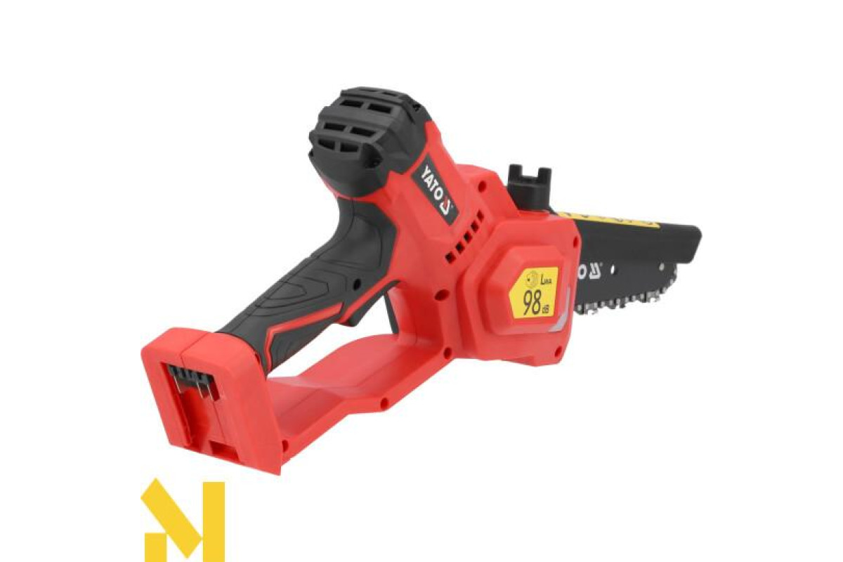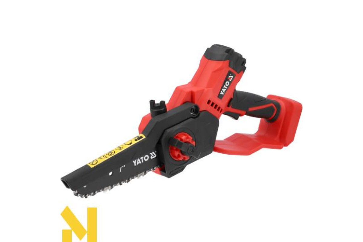 Міні-ланцюгова пила з безщітковим двигуном для високої продуктивності різання. Інструмент призначений для зрізання сучків дерев, гілок, здерев'янілих пагонів чагарників і т. д. Він поєднує в собі простоту використання, потужність і безпеку в роботі. Ланцюг змащується автоматично, що впливає на термін служби шини, і ланцюг рідше вимагає заточування. Прогумована кришка ручки забезпечує зручне та надійне захоплення.