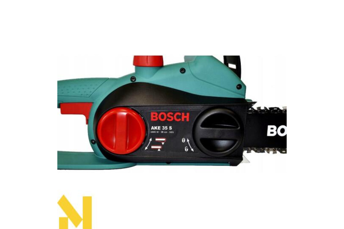 Швидкість руху ланцюга 9 м / с для оптимальної продуктивності різання. Електропила Bosch AKE 35 S обладнана системою захисту оператора від розриву ріжучого полотна, представлена сталевим улавливателем. Під час роботи змазування ріжучого полотна відбувається автоматично, а для контролю витрат мастила використовується прозорий індикатор на корпусі. Система Bosch-SDS для натягування й заміни ланцюга без використання додаткових інструментів, значно спрощує експлуатацію і обслуговування.