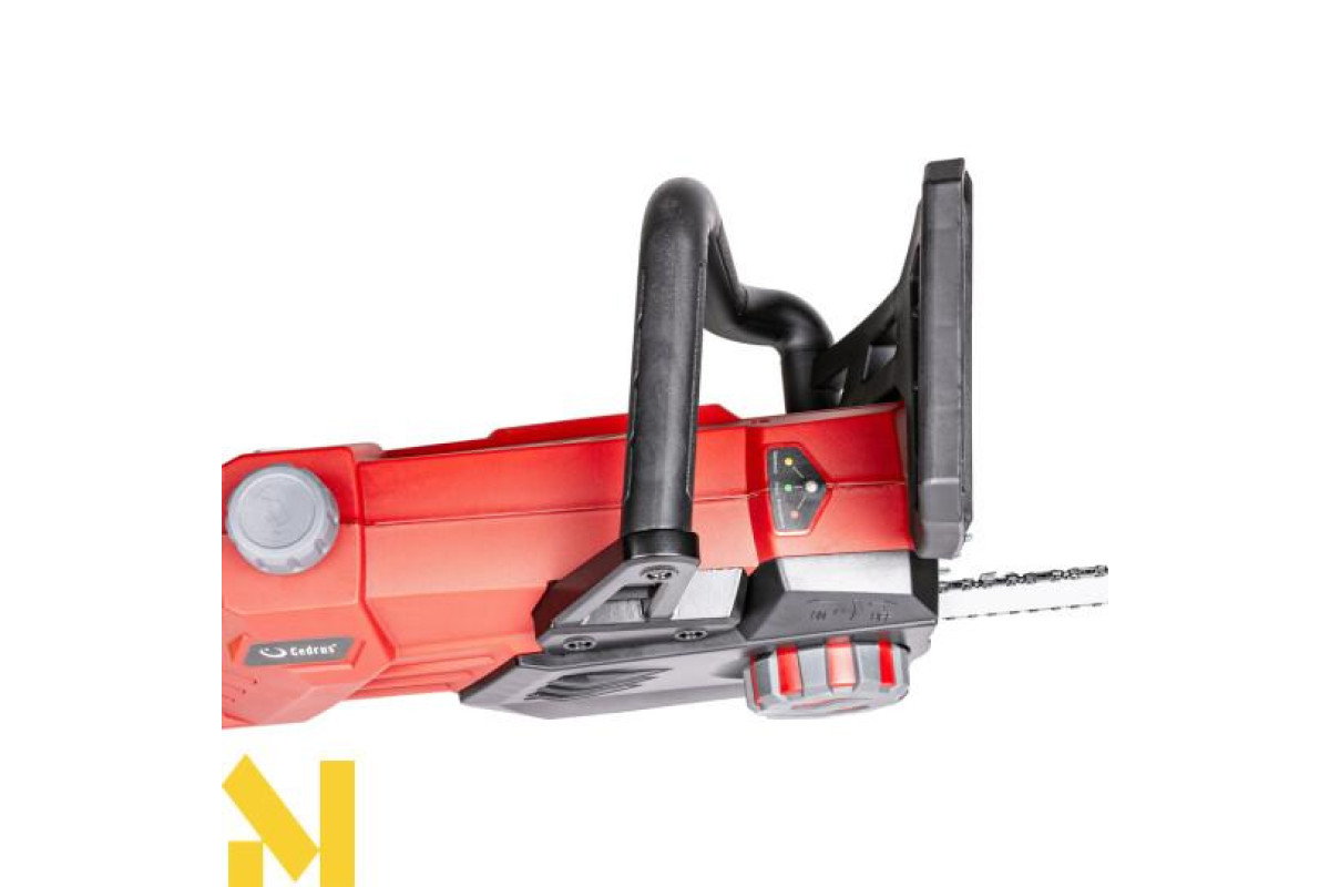 Електропила CEDRUS PE27-40 виготовлена з міцних матеріалів. Вона має зручні рукоятки для більшого комфорту в роботі. Бензопила має такі функції безпеки, як гальмо ланцюга для негайної зупинки ланцюга, розпірна гребінка, встановлена безпосередньо на корпусі, два пускових тригера для запобігання небажаних запусків і гачок для організації надлишкового кабелю живлення. Автоматичний масляний насос для змащування ланцюга також вбудований. Рівень мастила можна легко перевірити за допомогою прозорого індикатора на баку.