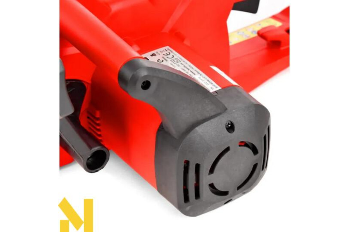 Високоякісна електрична бензопила з двигуном 2200 Вт і довжиною шини 35 см. Пила — безцінний помічник в саду та будинку. Електродвигун забезпечує високу надійність без складних налаштувань, і при цьому завдяки йому вдалося досягти загальної ваги всього 4,2 кг. У конструкції використовувалися якісні компоненти - завдяки використанню якісних і міцних пластикових і металевих деталей пила забезпечує відмінний баланс, що знижує втому під час роботи. Само собою зрозуміло, що включені вбудовані елементи безпеки, такі як запобіжне гальмо ланцюга для негайної зупинки ланцюга, фіксований упор для зубів або розрядка натягу кабелю живлення.