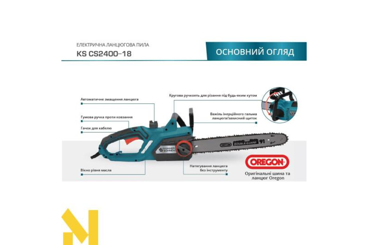 Електричні ланцюгові пили від Könner & Söhnen® – це максимальна продуктивність роботи без перерв на підзарядку та дозаправку, завдяки цьому вони справляються з великим обсягом завдань та здатні до тривалої роботи без перерв.