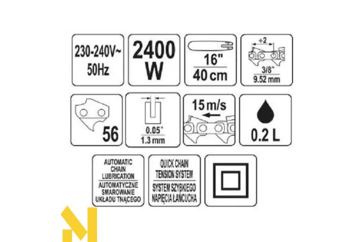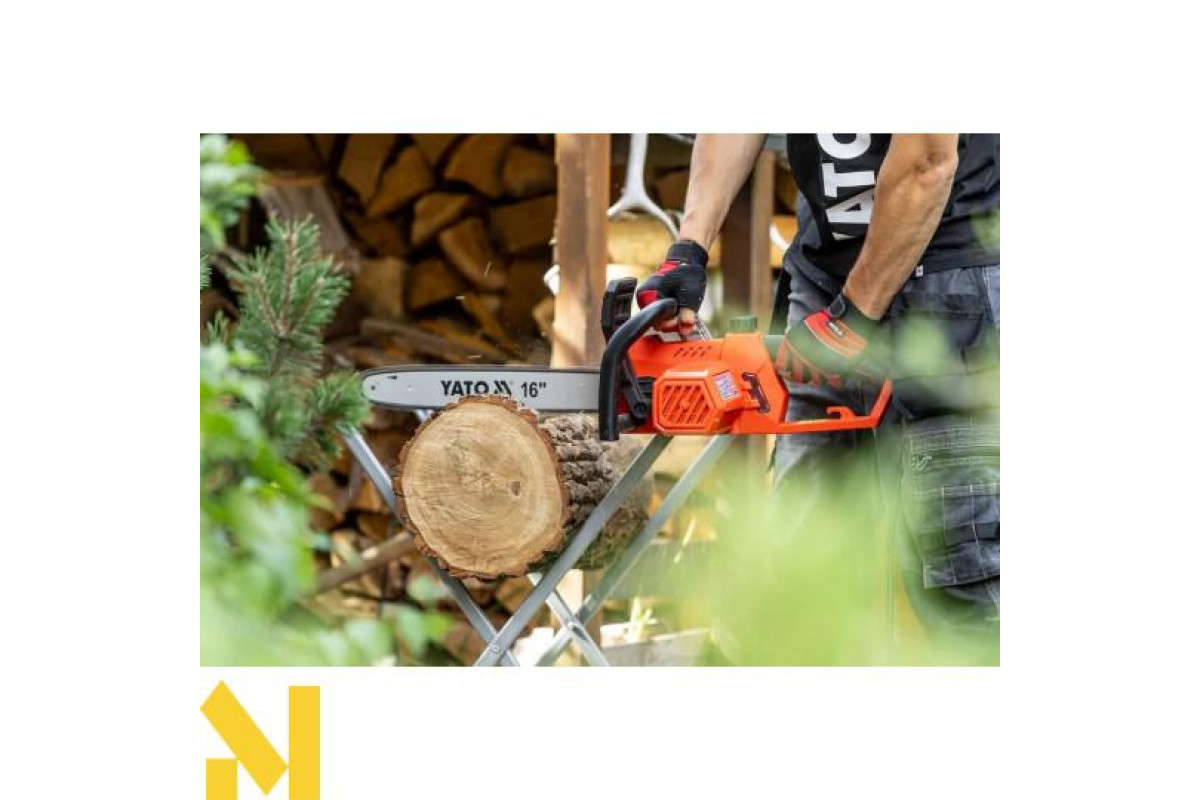 Зручна та легка пила YATO YT-84872 з гарною продуктивністю різання. Він ідеально підходить для роботи вдома та в саду. Чудова ергономіка забезпечує приємну роботу. Бічний натягувач використовується для безпечного натягу ланцюга без використання інструментів. Пила має вбудований масляний бак для автоматичного мастила ланцюга. У баку є прозоре оглядове скло для контролю рівня оливи.