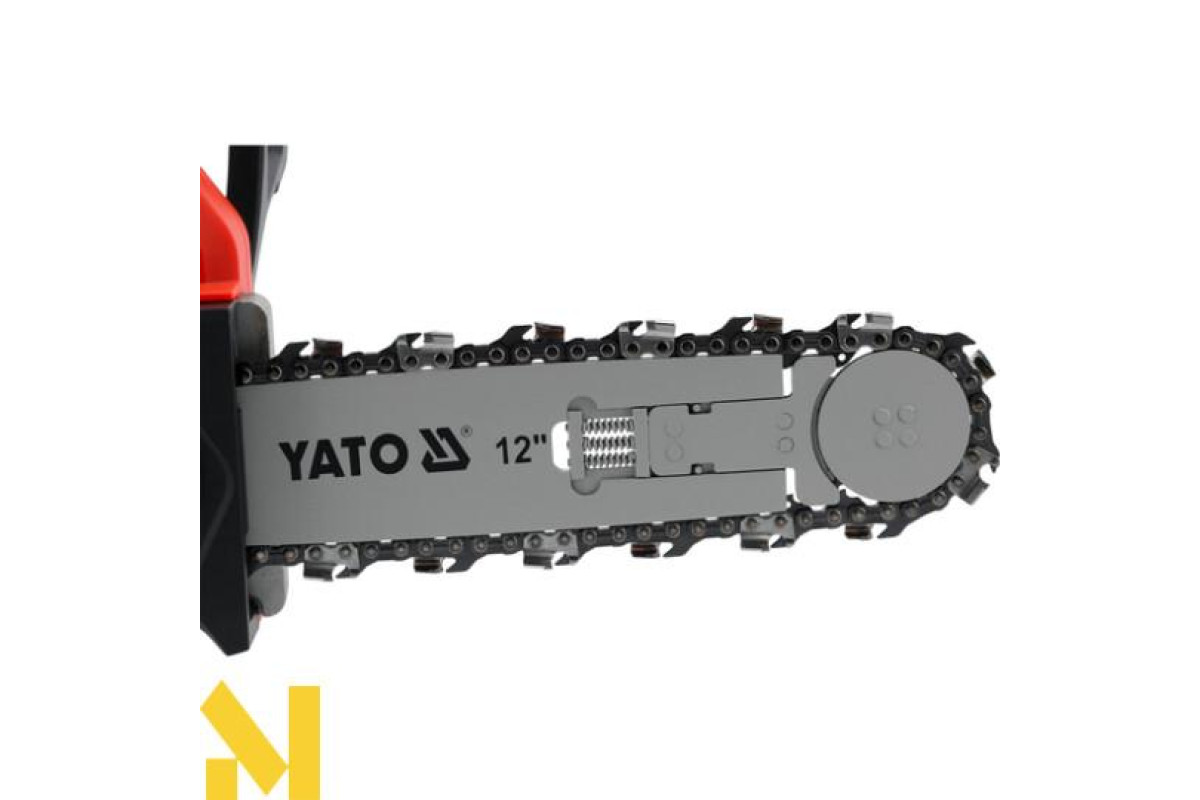 Інструмент пристосований для роботи з направляючою YT-821572 і ланцюгом YT-821571, що забезпечує стабільне ведення і точність різання на відстані до 250 мм. Потужний двигун 1200 Вт гарантує постійну швидкість і рівномірне різання навіть у більш твердих матеріалах. Направляюча 12" і ріжучий ланцюг зі сталі 65Mn дуже міцні і стійкі.