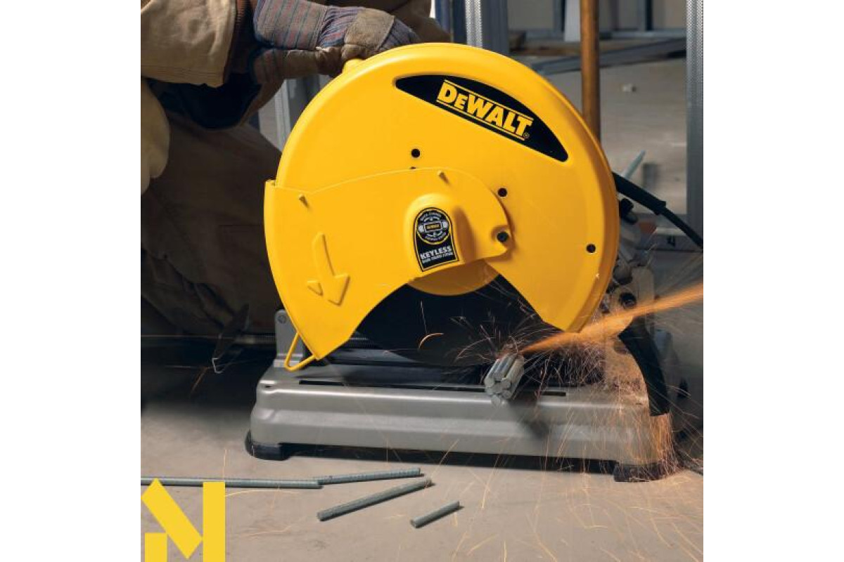 Монтажна пила DeWalt D28715 - інструмент, який володіє потужним електромотором з високими перевантажувальними даними. Пила обладнана захистом від абразивного пилу, а також іскор і стружки. А для збереження двигуна інструмент використовує щітки, які автоматично вимикаються. Інструмент має досить велику поверхню завдяки зручній станині. Станина забезпечує хорошу стійкість при роботі з інструментом. Також пила оснащена лещатами для швидкого і надійного закріплення заготовки. Ви зможете закріпити диск навіть без ключа, що буде дуже доречним при необхідності швидкої заміни диска. За необхідності шпиндель апарату може бути заблокований. Пила має функцію плавного електронного запуску для повного обмеження віддачі та пускового струму. Комплетація: Відрізний диск по металу Шестигранний ключ Кріплення диска без ключа