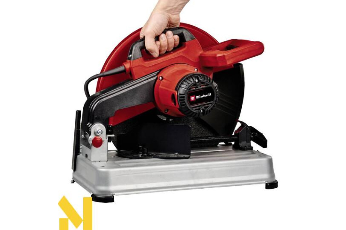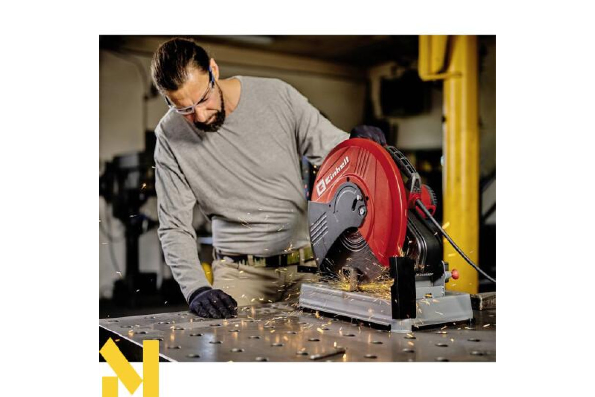 Монтажна пила Einhell TC-MC 355/1 - це ідеальний інструмент для легкого та ефективного різання в розмір металу різної товщини. За високу продуктивність відповідає двигун потужністю 2200 Вт, що обертається з частотою 4200 обертів на хвилину. Функція плавного старту поступово виводить двигун на максимальний крутний момент. Регульований обмежувач дає змогу налаштувати глибину різу. Блокування шпинделя дає можливість швидко і безпечно змінювати оснащення. Відрізний диск (Ø 355 мм x 25,4 мм x 2,8 мм) поставляється в комплекті, як і шестигранний ключ, закріплений на корпусі. Лещата зі швидкозатискним механізмом надійно утримують заготовку під обраним кутом (0° - 45°). Кожух забезпечує захист від іскор, що летять. Скоба фіксує інструмент у складеному положенні, дозволяючи зручно переносити його за транспортну ручку.