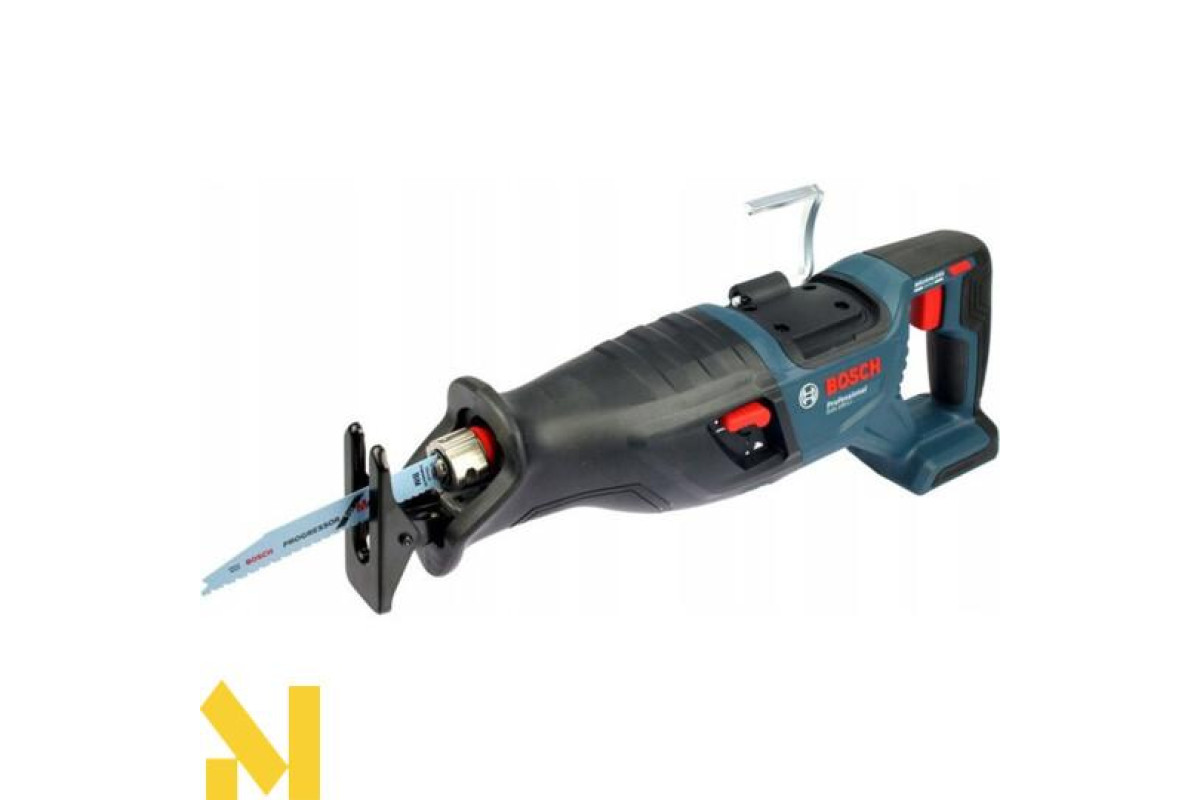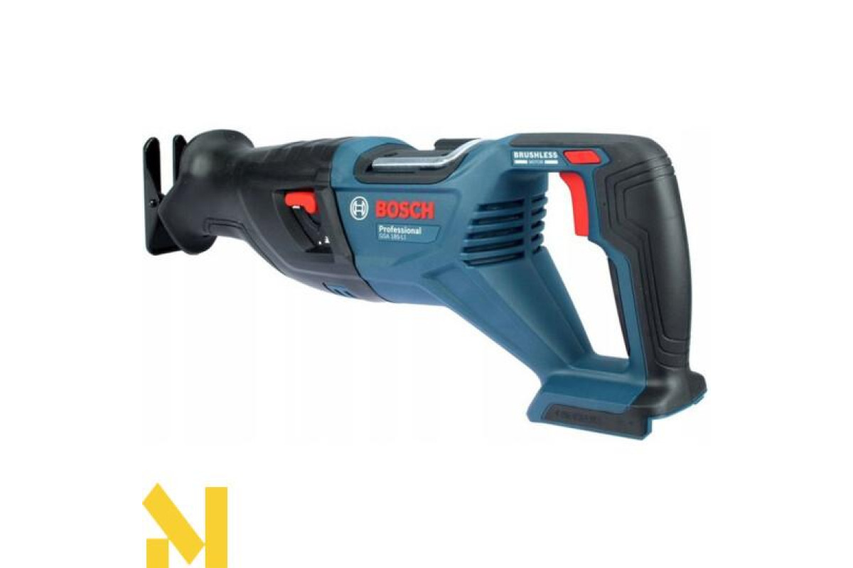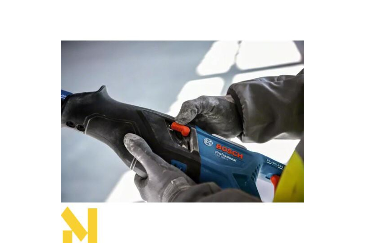 GSA 185-LI ідеально спроєктований для різання близько до стін у положенні різання знизу догори. Його ергономічний дизайн відрізняється вигнутою верхньою частиною ручки, яка зручно підтримує положення з різними можливостями захоплення. Швидкість можна легко регулювати, і вона плавно регулюється перемикачем. Шабельна пилка постачається зі знімним кроквяним гаком для збалансованого підвішування інструмента.