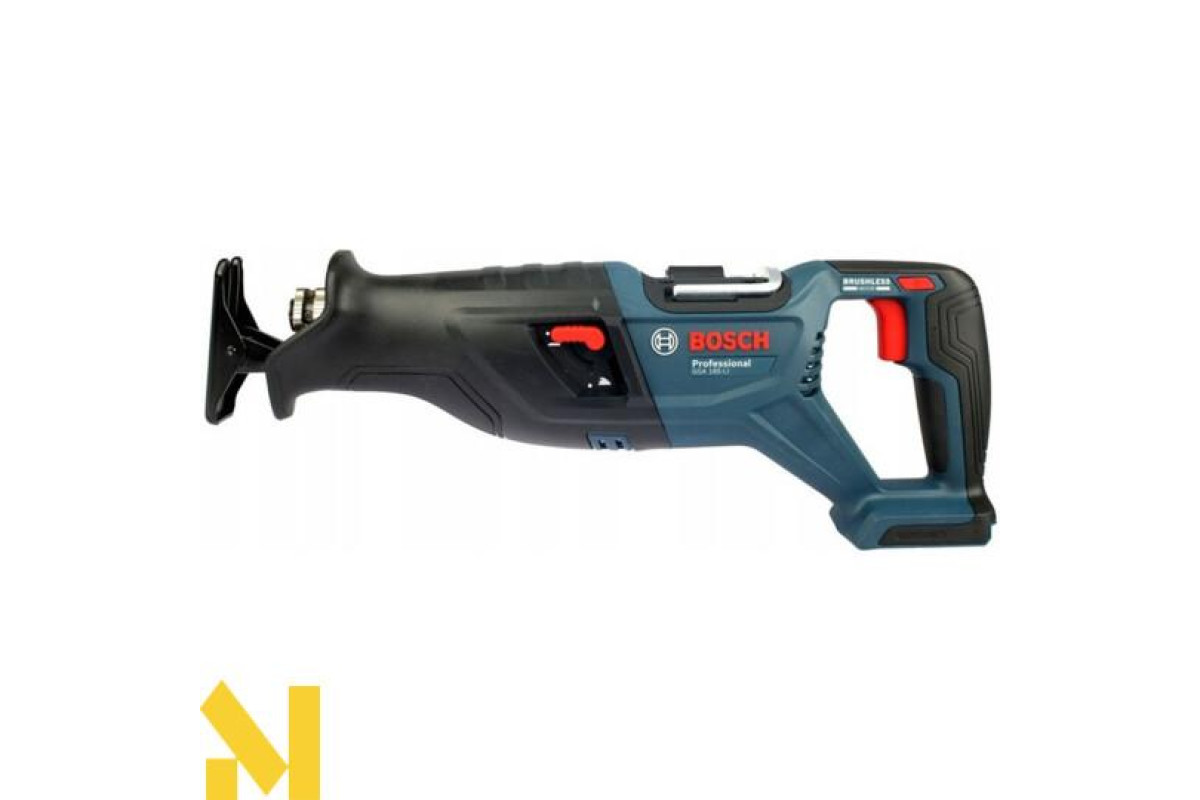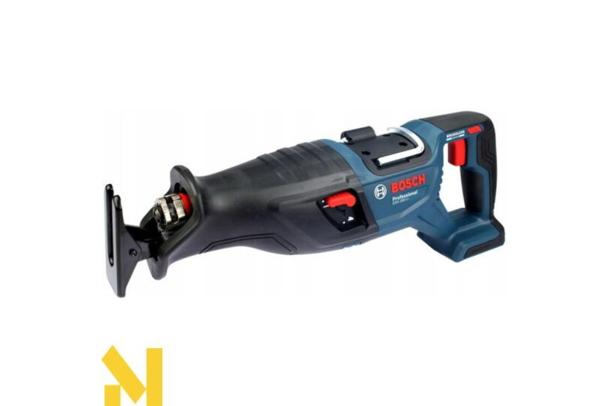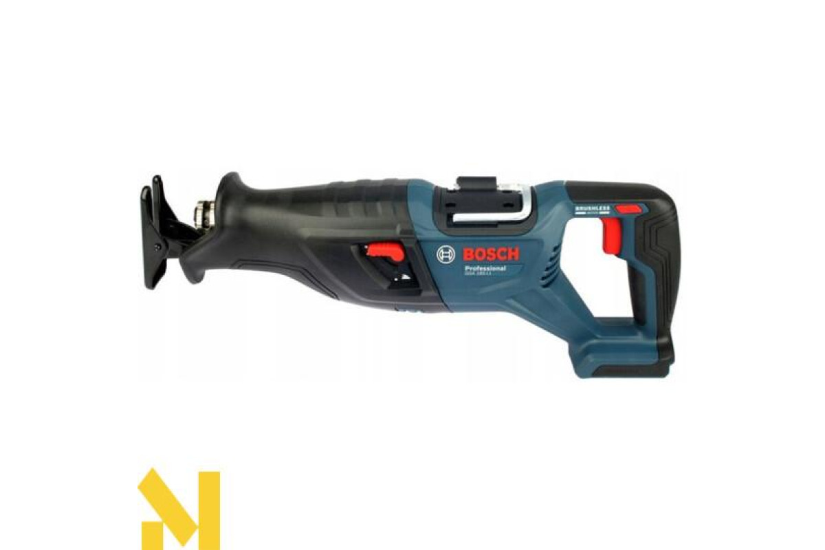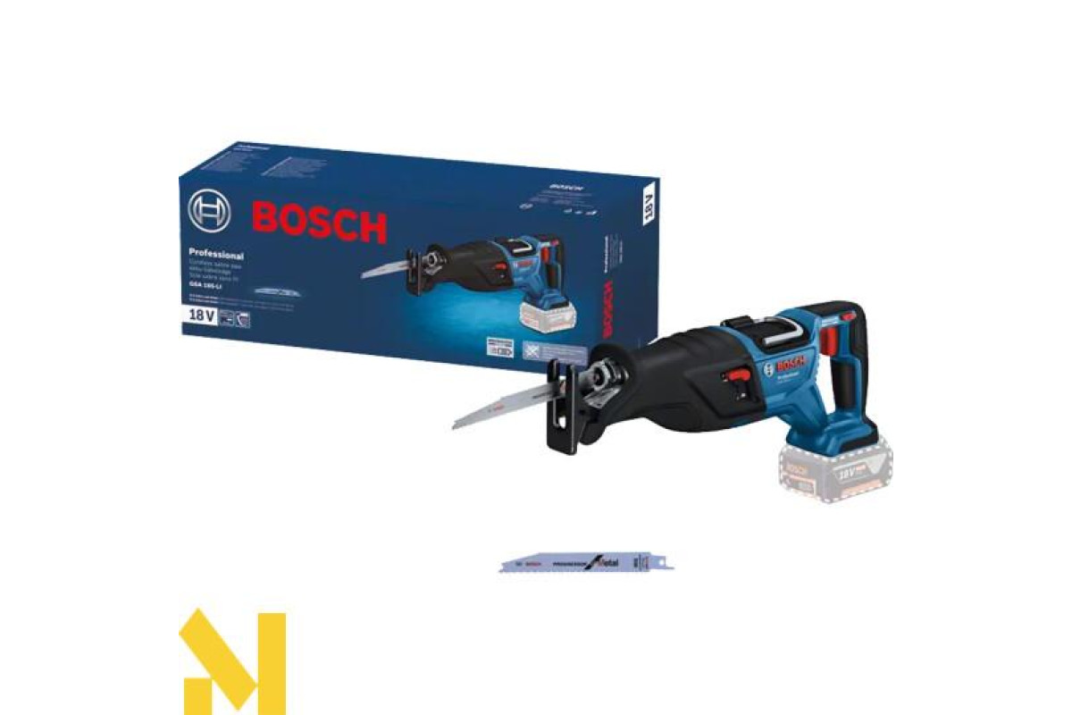 GSA 185-LI ідеально спроєктований для різання близько до стін у положенні різання знизу догори. Його ергономічний дизайн відрізняється вигнутою верхньою частиною ручки, яка зручно підтримує положення з різними можливостями захоплення. Швидкість можна легко регулювати, і вона плавно регулюється перемикачем. Шабельна пилка постачається зі знімним кроквяним гаком для збалансованого підвішування інструмента.