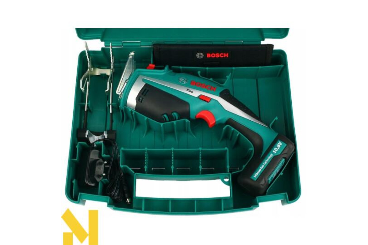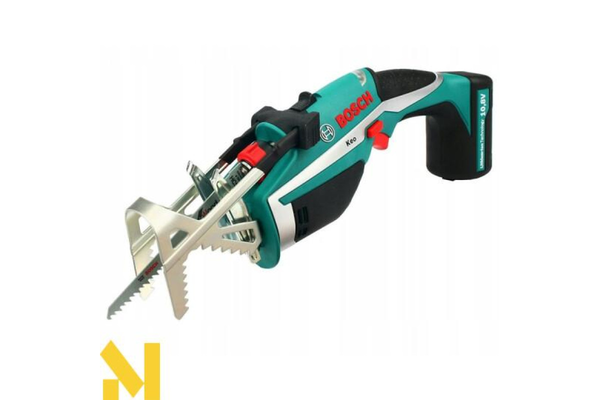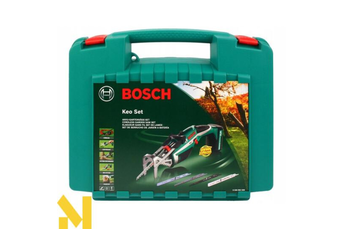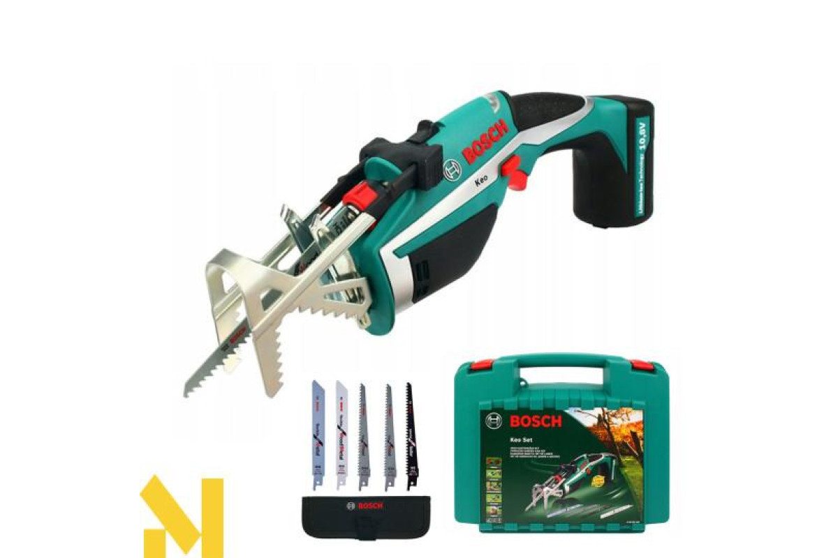 Акумуляторна садова пилка Bosch Keo Set рекомендована для роботи з деревом і металом. Завдяки батареї вона не залежить від електрошнура, а тому достатньо автономна. Інтегрований літій-іонний акумулятор здатен повністю зарядитися всього за три години. Він також не має ефекту пам’яті, що дозволяє не чекати повної його розрядки.