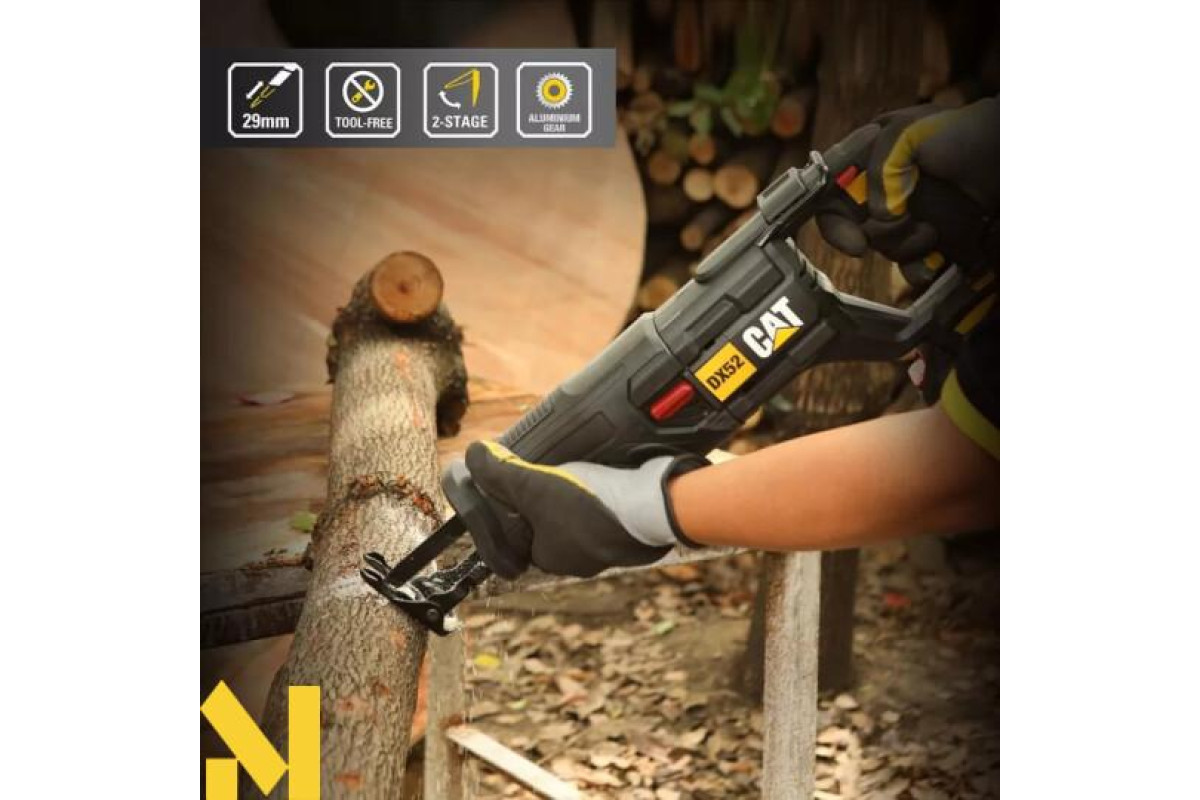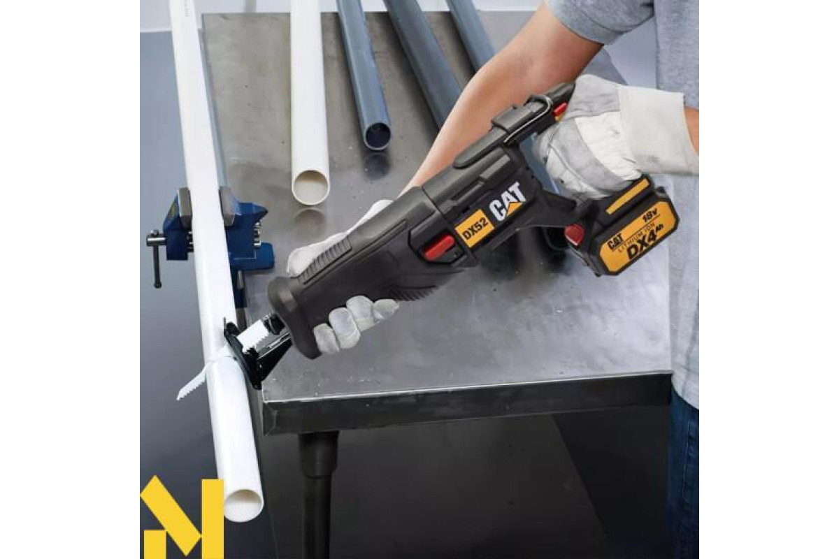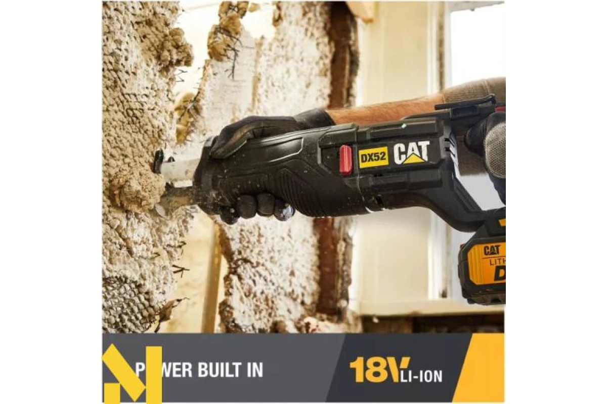 Шабельна пила CAT постачається з полотном та працює без дротів, тому відмінно підійде для роботи на будмайданчиках, які не мають доступу до електрики, також її зручніше використовувати, адже під руками не будуть плутатися дроти. З потужним безщітковим двигуном вона пропилює дерево на 30 см, а метал — на 1,2 см. Зношену пилку можна легко замінити завдяки швидкозатискному кріпленню без додаткових інструментів. Використовуйте маятниковий хід для видалення зайвої стружки та швидших результатів, також не забувайте про зручну підсвітку для безпечної та акуратнішої роботи.