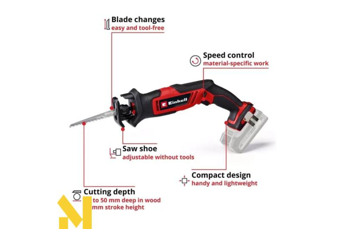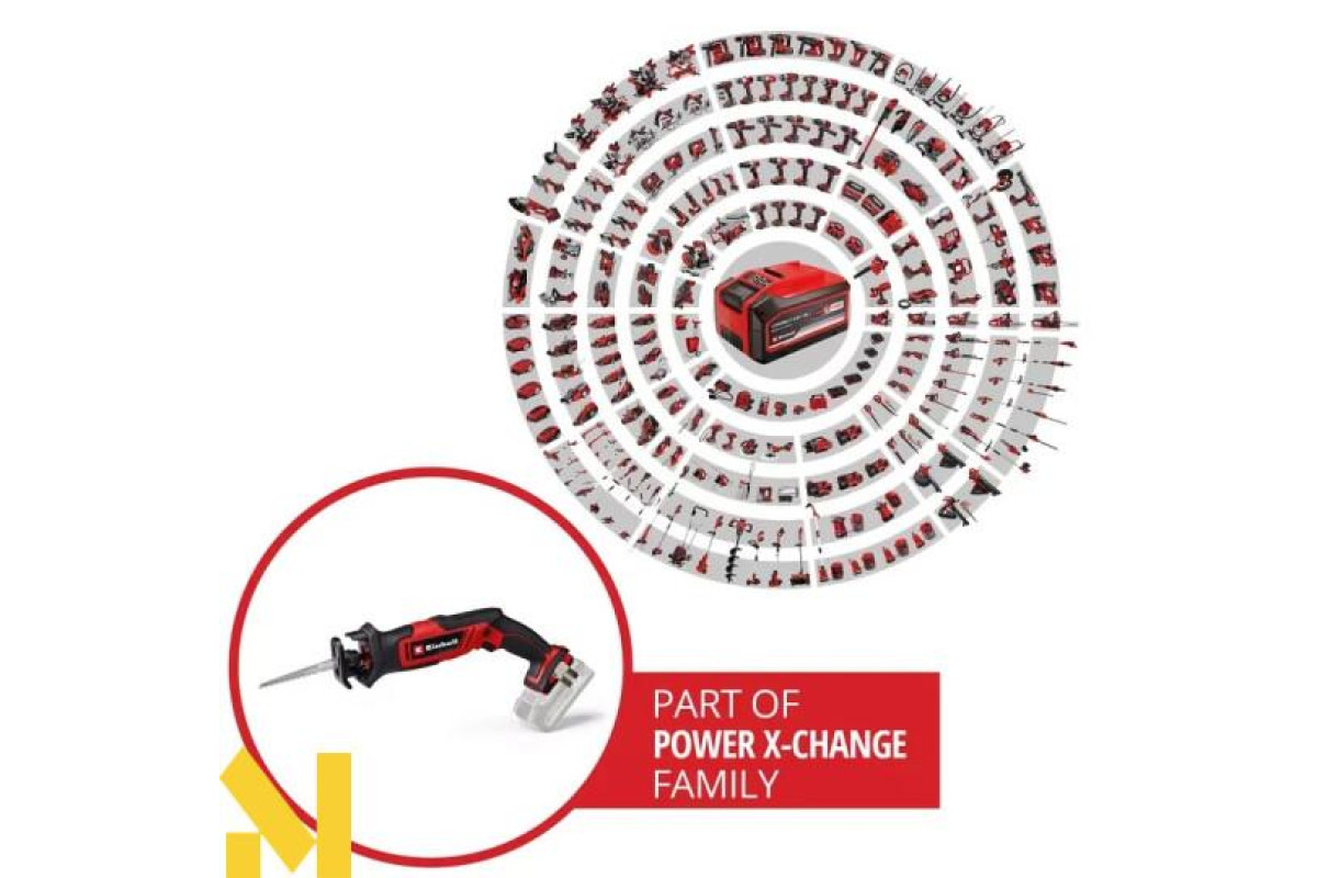 Шабельна пила є частиною сімейства Einhell Power X-Change і може поєднуватися з усіма акумуляторами та зарядними пристроями сімейства системи.