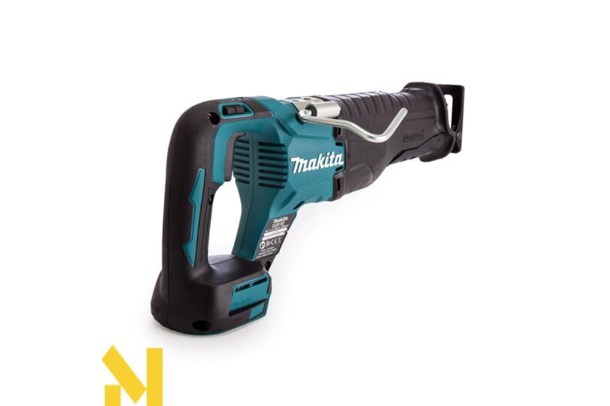 Акумуляторна ножівка Makita DJR187RME має високу швидкість різу з можливістю регулювання швидкості. Заміна пильного полотна і регулювання упору проводиться без допомоги інструменту. Новий вертикальний кривошипно-шатунний механізм зводить до мінімуму відхилення леза і знижує вібрацію. Більш висока швидкість різання і скоригована довжина ходу забезпечують більш високу ефективність різання. Зручний великий курок вимикач має функцію регулювання ходів пиляльного полотна.