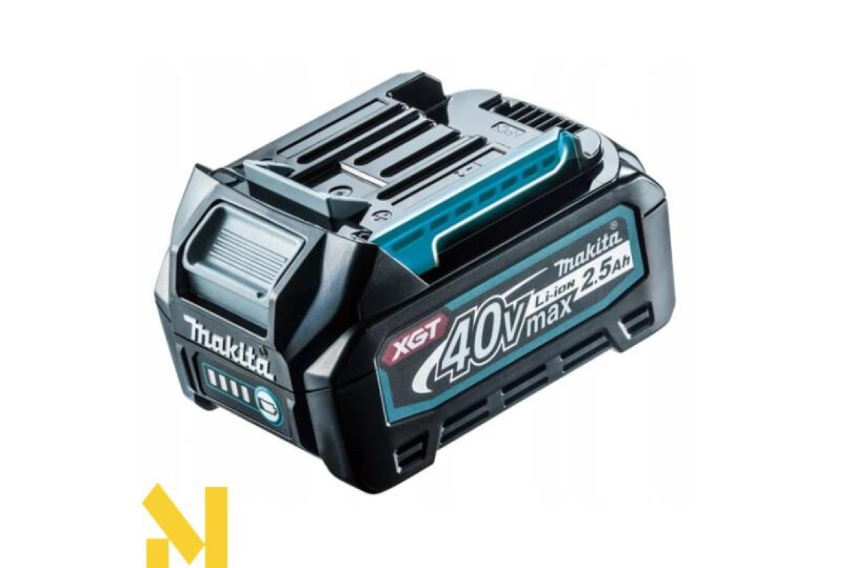 - Поставляється в кейсі з 2 батареями BL4025 (40 В макс. / 2,5 Ач) і зарядним пристроєм DC40RA