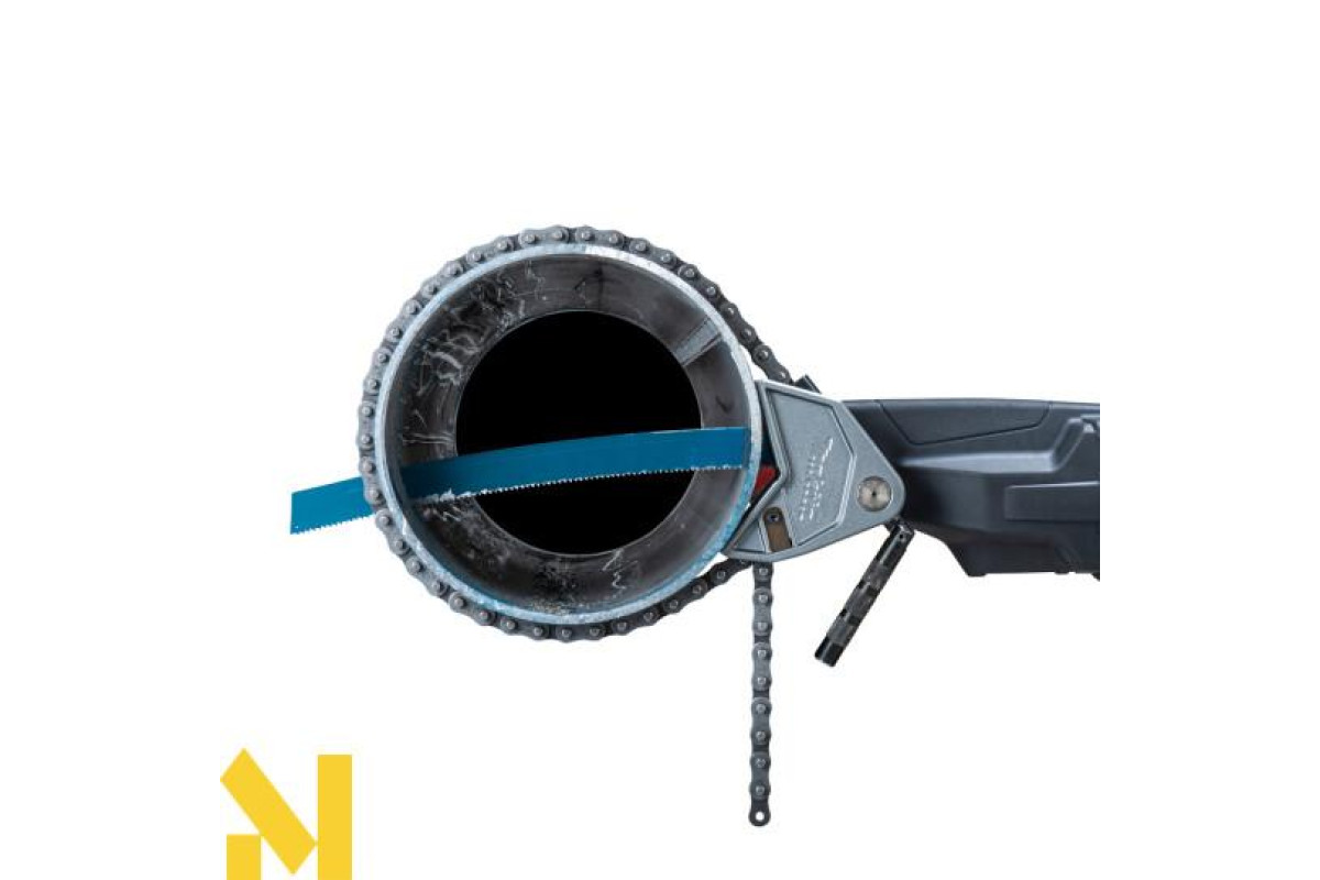 Акумуляторна пила з підвищеною точністю різання завдяки ланцюговому лещатам, які надійно фіксують оброблюваний елемент, забезпечуючи при цьому ідеальне поєднання потужності та міцності, необхідних для різання труб великого діаметру. Завдяки технології XPT пристрій має підвищену стійкість до пилу та вологи. Просте обслуговування затискача леза.