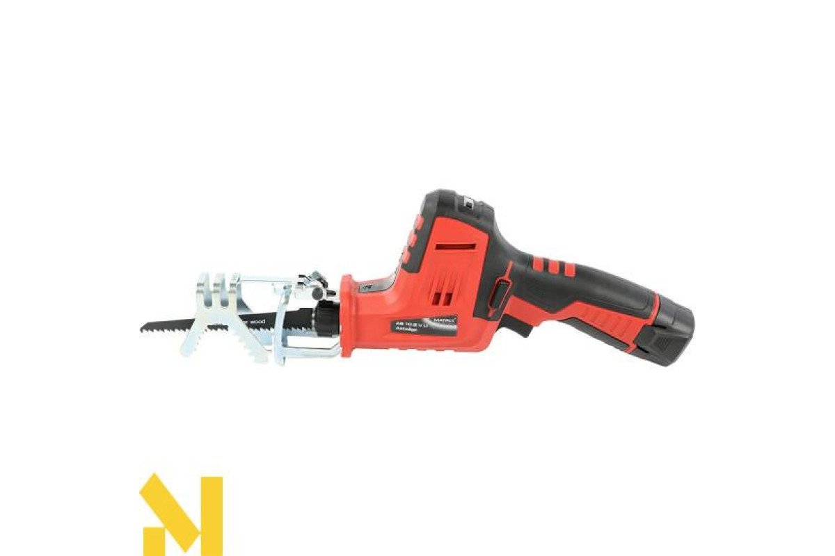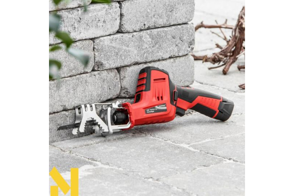 Шабельна пила Matrix AS 10.8 V Li - ідеальний помічник при обрізанні дерев і чагарників. Знімні затискні губки забезпечують надійну фіксацію і точний напрям різання. Гостре і міцне пильне полотно забезпечує чистий результат різання. Пильне полотно можна легко замінити без додаткових інструментів.