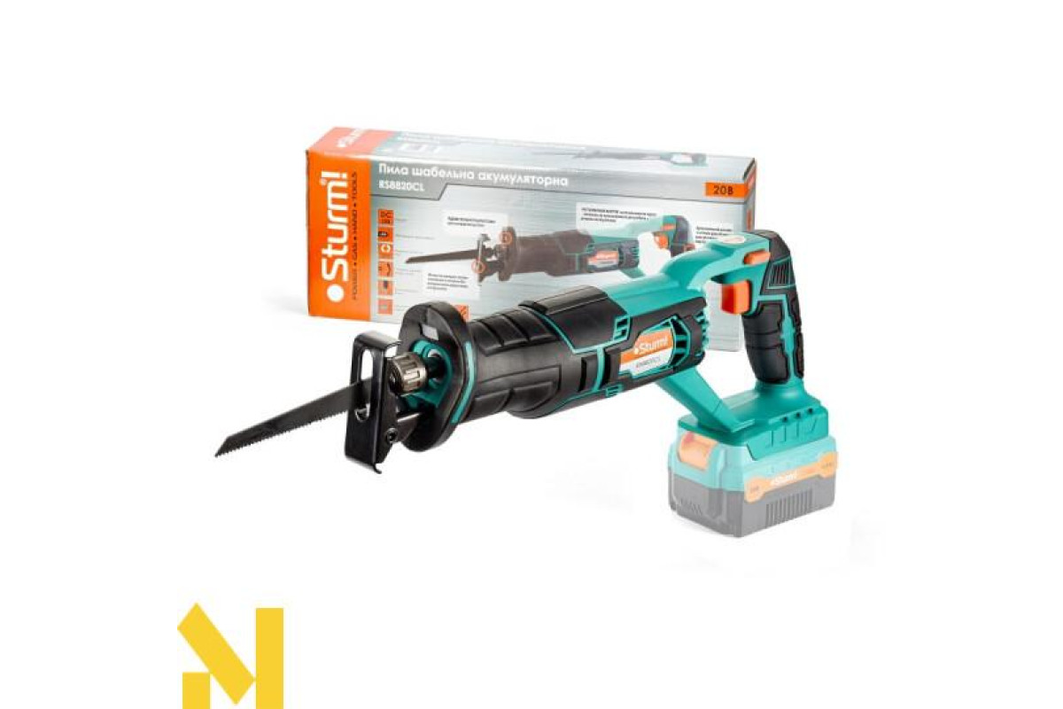 Sturm RS8820CL представляє собою універсальний інструмент для здійснення розрізання широкого спектру різних матеріалів, різної твердості і складу. В якості робочого органу в даному інструменті застосовуються спеціальні плоскі ріжучі полотна, які можна порівняти зі звичайним полотном лучкової пили. Сабельная електропила Sturm RS8820CL використовується для розпилювання різних матеріалів: деревини, гіпсокартону, пластмас, газобетону, і іншого. Основне правило - щоб товщина матеріалу, що розпилюється відповідала технічним параметрам і можливостям даного інструменту. Універсальний тримач полотен забезпечує легку заміну полотен. Для заміни необхідно повернути головку, і замінити старе полотно на нове, після чого повернути головку в початкове положення. Ножівка розроблена спеціально для тривалої і зручної експлуатації. Спеціально для цього інструмент оснащений D-подібною ручкою, а діаметр і форма шийки редуктора відмінно підходять для зручного хвата другою рукою. А наявність м'яких, неслизькою вставок і накладок з якісного еластомеру дозволяють надійно фіксувати інструмент. Поставляється без акумулятора і зарядного пристрою.