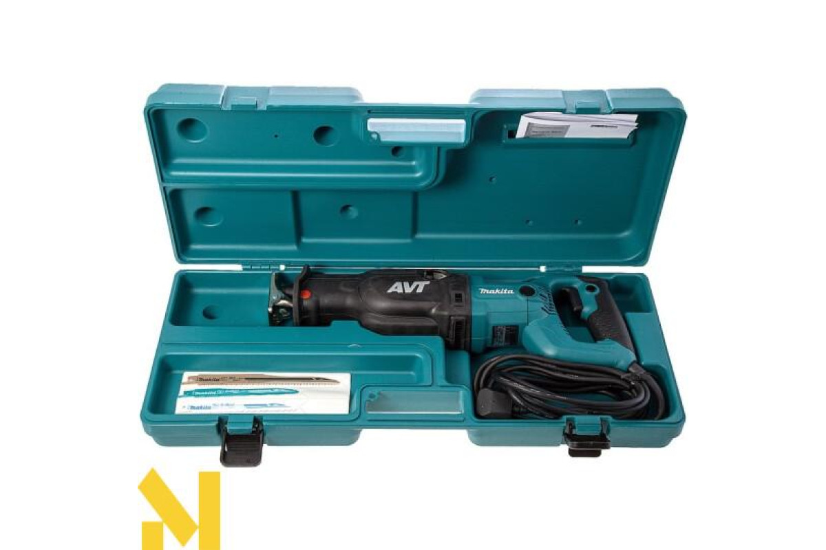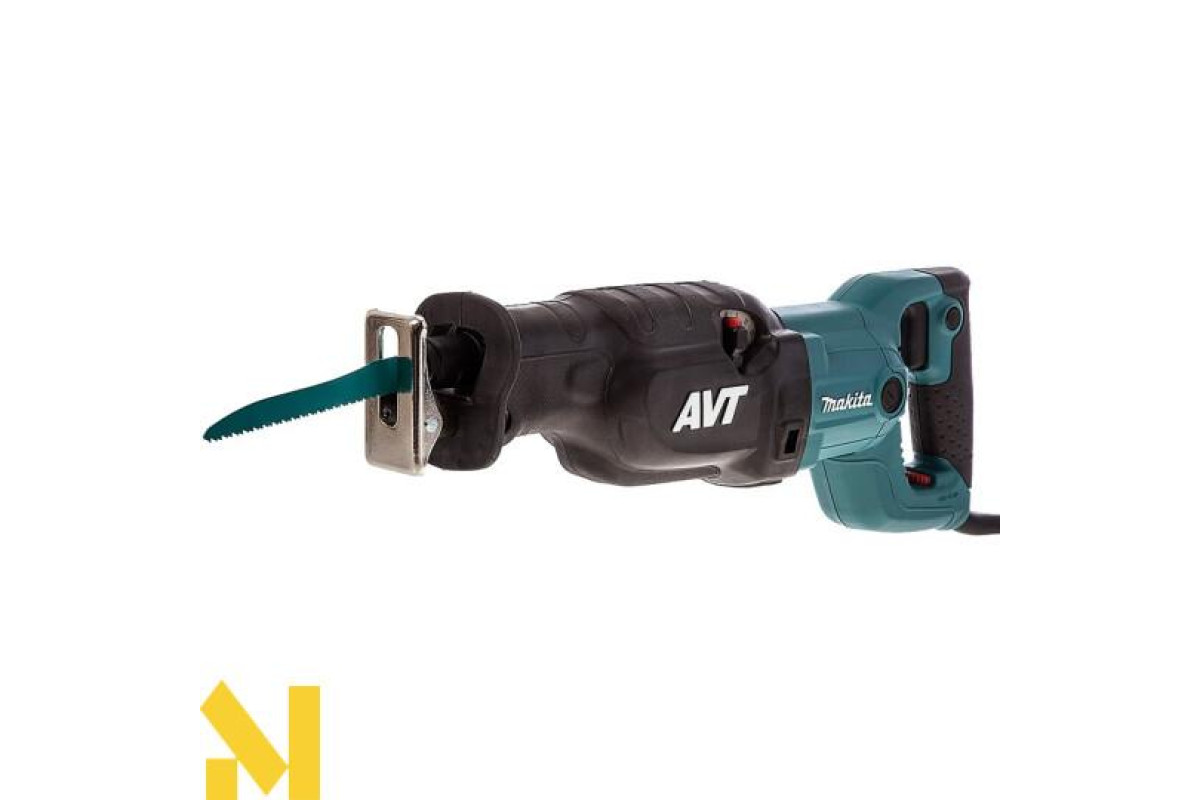 Шабельна пила Makita JR3070CT вважається професійною технікою, якою розпилюють метал, пластмасу, газобетон, гіпсокартон, деревину. За рахунок антивібраційної технології AVT, забезпечується висока швидкість розпилення при низькому рівні вібрації. Електроінструмент працює від двигуна потужністю 1510 Вт, що забезпечує 2800 хід/хв, при довжині ходу в 32 мм. Завдяки тому, що маятниковий хід може встановлюватися в чотирьох позиціях, підвищується швидкість розпилення. Це дуже корисно при роботі з товстими заготовками. Вбудована електроніка дозволяє змінювати швидкість пиляння. Регулювання відбувається за допомогою сили натиску на пускову кнопку. До того ж можна попередньо встановлювати 4 ступеня максимальної швидкості розпилу. Це дозволяє підлаштовуватися під матеріали з різною щільністю. Варто відзначити поліпшену пило- та вологозахисні системи, які гарантують довговічність апарату при використанні його в екстремальних умовах. Крімі цього запобіжна муфта не дає вузлам і деталям передчасно зноситися. А ще береже оператора від ривка, в разі заклинювання пилки в поверхні. Електрична ножівка має універсальний затиск, який надійно фіксує насадки без використання додаткових засобів. До того ж вона обладнана обмежувальним упором, який регулюється для раціонального використання ріжучого полотна.