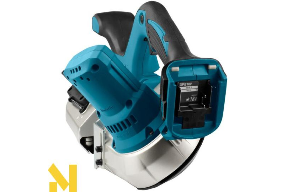Стрічкова пила Makita DPB182Z призначена для розпилювання металевих і дерев'яних заготовок. Завдяки компактності конструкції вона стане в нагоді під час різання труб, профілів і інших елементів в умовах обмеженого простору або в важкодоступних місцях. Інструмент підійде для виконання операцій на рівні грудей або над головою за рахунок малої ваги - 3,8 кг.