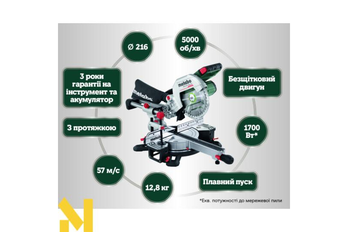 Компактна, легка та зручна в користуванні, призначена як для торцювання під прямим кутом, так і для точних пропилів під різними кутами