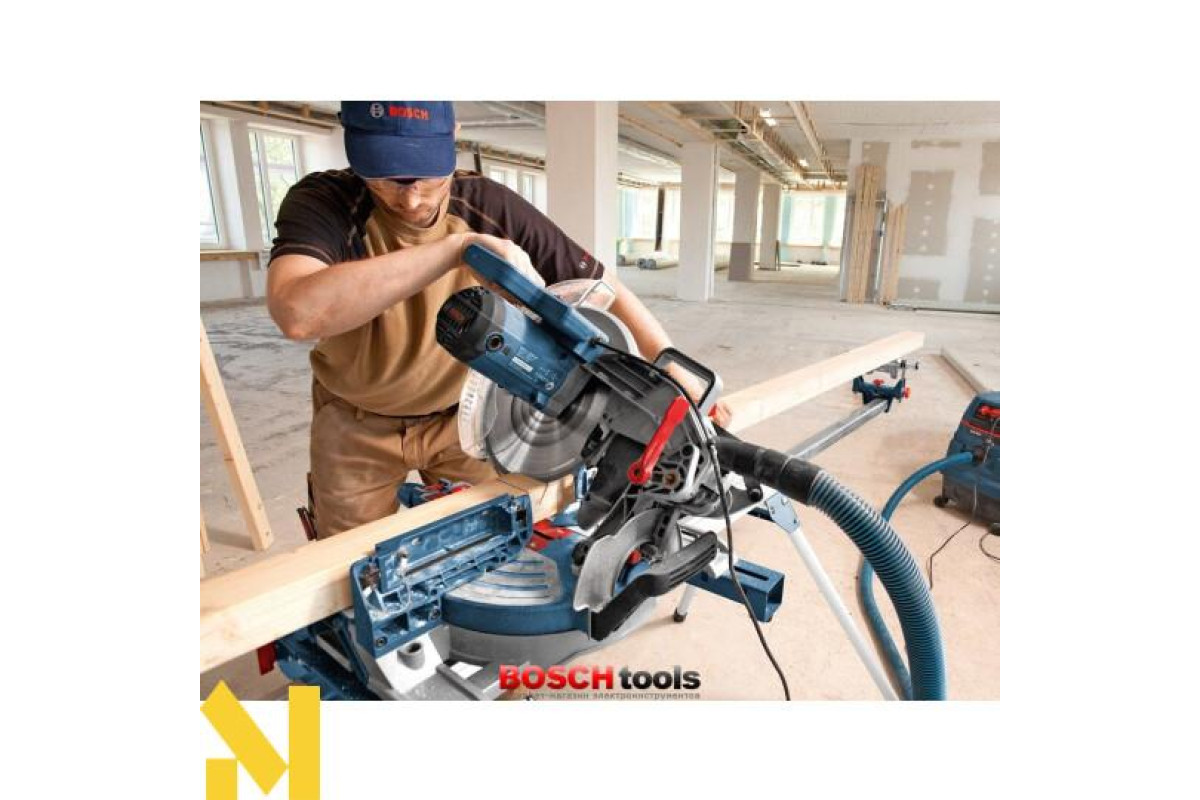 - Пила торцювання Bosch GCM 12 JL, працюючи диском 305 мм, робить прямі, похилі і діагональні пропили в деревині всіх порід, деревних матеріалах уздовж і поперек волокон. Особливо дана модель зручна для розпилювання довгих дощок.