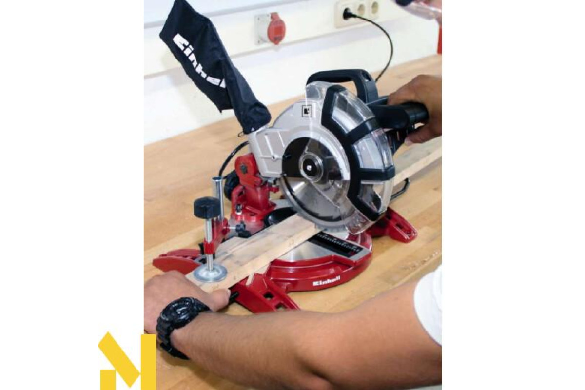 - Утримання заготовки відбувається за допомогою міцної струбцини, яка притискає заготовку і двосторонніх упорів. Стійке положення заготовки безпосередньо відбивається на якості пропила.
