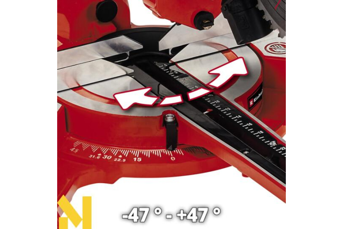 - Діапазон нахилу пильного диска: -47 ° - +47 °
