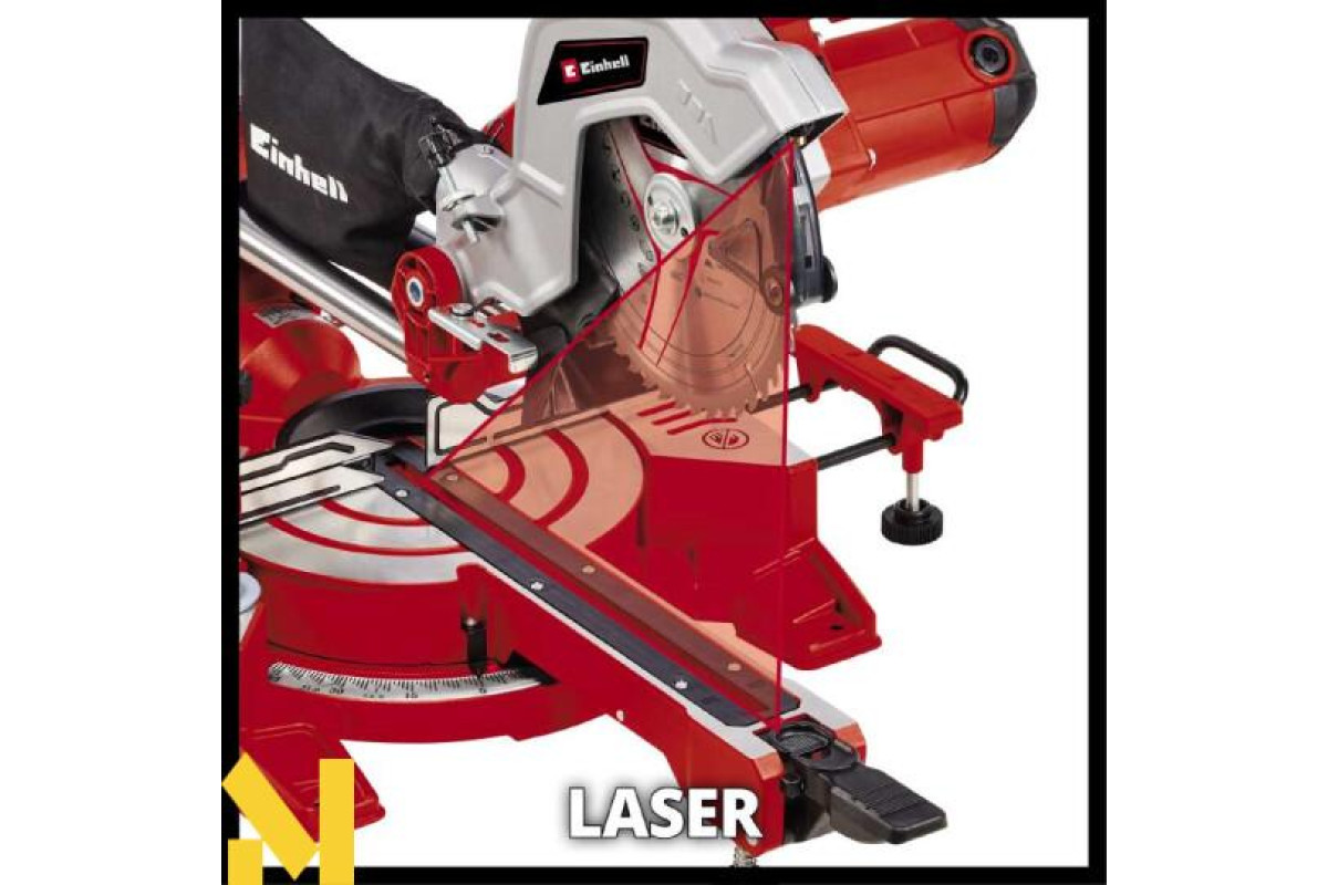 Нова пила торцювання Einhell TC-SM 216 дозволяє виконувати швидку, точну і чисту расторцовку дерев'яних виробів. Поворотно-похила голова пилки дозволяє виконувати звичайні і подвійні похилі пропили. Пила гарантує чистий і гладкий зріз завдяки 48 зубах пилкового диска Ø216 мм і глибину пропила при 90 ° до 65 мм. Einhell TC-SM 216 має поворотний стіл з точним регулюванням кута. Пила торцювання Einhell TC-SM 216 оснащена механізмом протягання, який дозволяє збільшити ширину оброблюваної заготовки при 90 ° до 305 мм. Для підвищення точності пила Einhell TC-SM 216 оснащена лазерним модулем, промінь лазера проектується на оброблювану заготовку в площині різання.