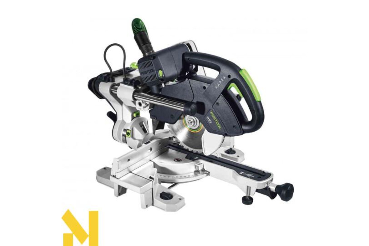 Нова торцювальна пила FESTOOL KAPEX KS 60 E (561683) відмовилася від усього. що не потрібне для роботи. Наприклад. від зайвої ваги. Зате отримала ергономічно розташовані ручки для перенесення. бухту для кабелю та фіксатор для транспортування. І дуже компактні напрямні штанги. які виступають за корпус. Вона не знає компромісів у питаннях точності та універсальності: кут повороту до 60 градусів в обидві сторони та кут нахилу до 46 градусів в одну та 47 градусів в іншу сторону. Надійна система протягування диска по двох напрямних на підшипниках Festool. І багато інших розумних деталей. як наприклад. світлодіодна підсвітка. висувний розширювач столу. додаткова функція обмеження глибини пиляння або малка-кутомір перетворюють KAPEX KS 60 на мобільний та універсальний інструмент для чудових результатів.