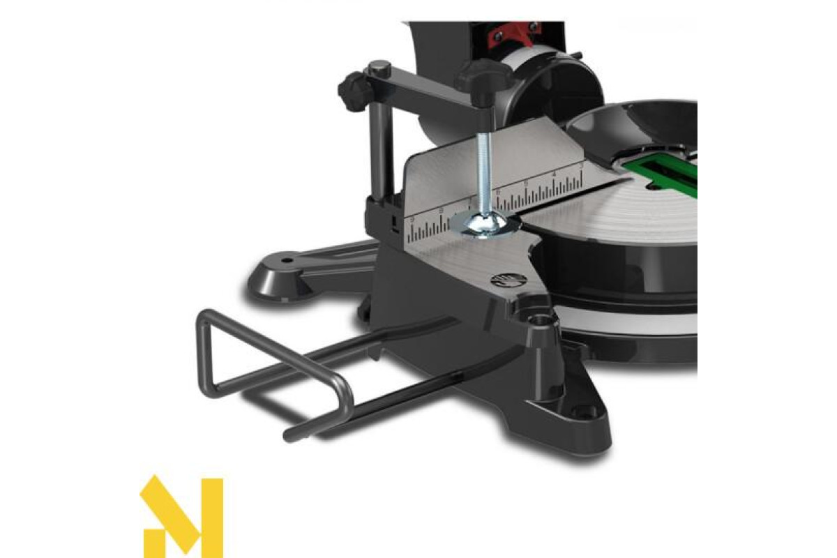 Мобільна торцювальна пила по дереву Holzstar KGZ 305E має 2-позиційний регульований обмежувач глибини паза, що регулюється, з упором, який легко перемикається.