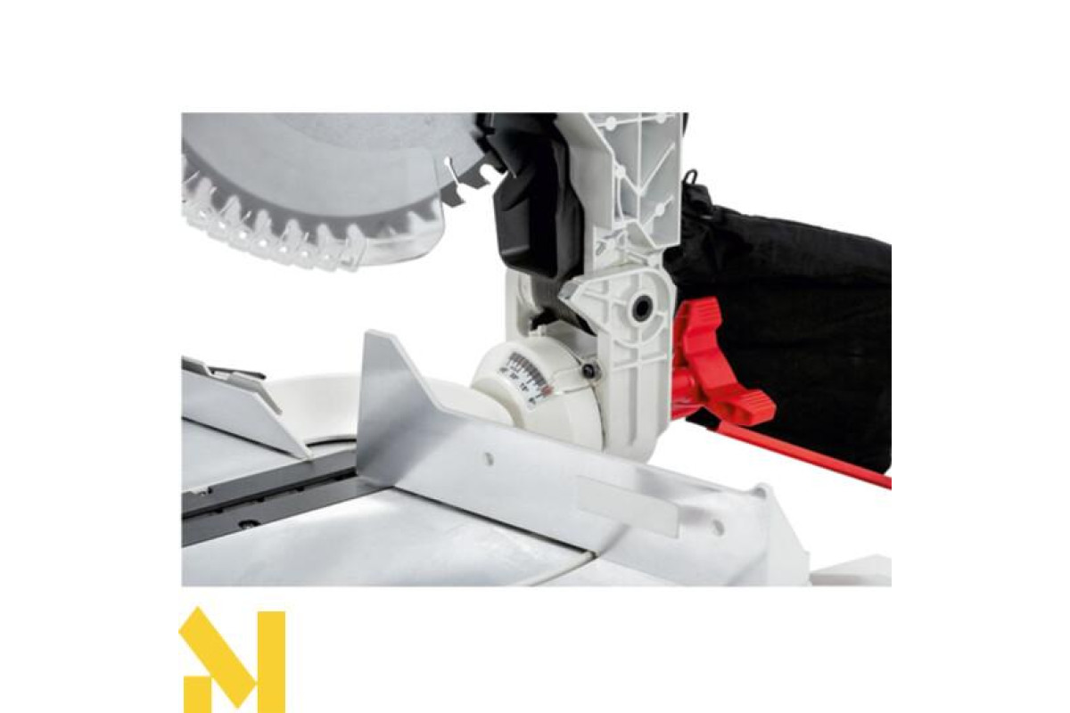 Верстат укомплектований знімним гвинтовим притиском заготовки, аспіраційним патрубком і мішком для збору пилу. Для полегшення заміни диска передбачена кнопка блокування шпинделя.