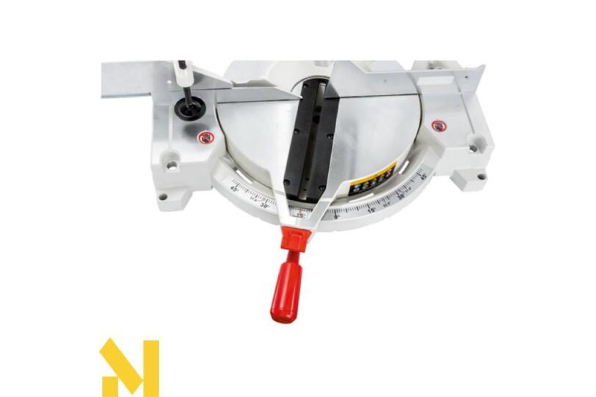 Діапазон регулювання кута нахилу розтягнутий на три градуси в обидва боки: до 48° в один і до -3° від вертикалі в інший. Оскільки необхідність встановлення таких значень виникає рідко, механізм має жорсткі упори значень 0° і 45°, які знімаються натисканням на блокувальний штифт. Поворот пильної частини щодо столу можливий так само на кут до 48°, але вже в обидва боки. Фіксація обраного значення здійснюється або обертанням рукоятки гвинтового затиску, або підпружиненим стопором попередньо встановлених значень (0, 15, 22.5, 31.6, 45 і 48°), який знімається натисканням на "язичок" над ручкою.