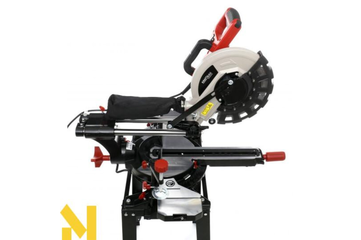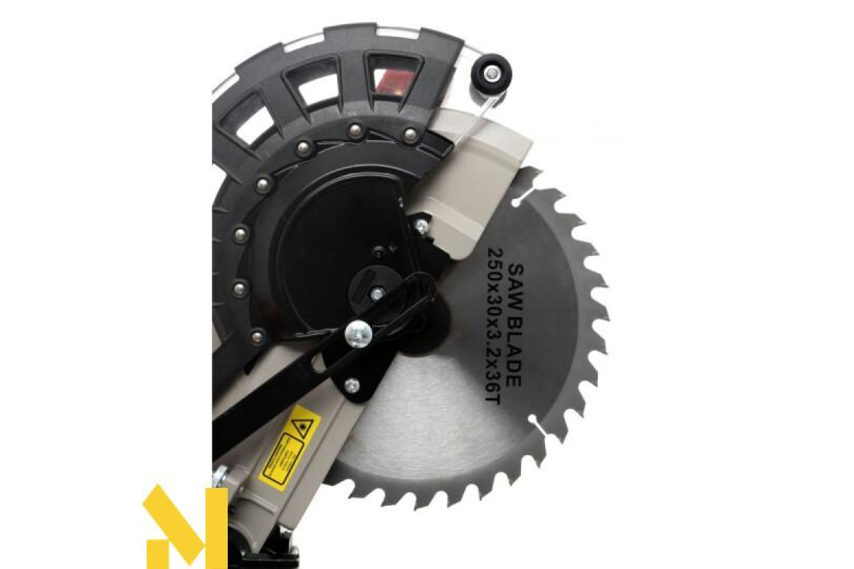 Торцювальна пила оснащена лазером, що значно покращує роботу і робить пропили більш точними.