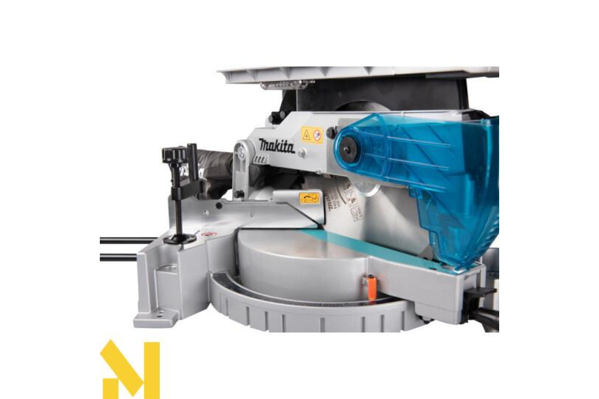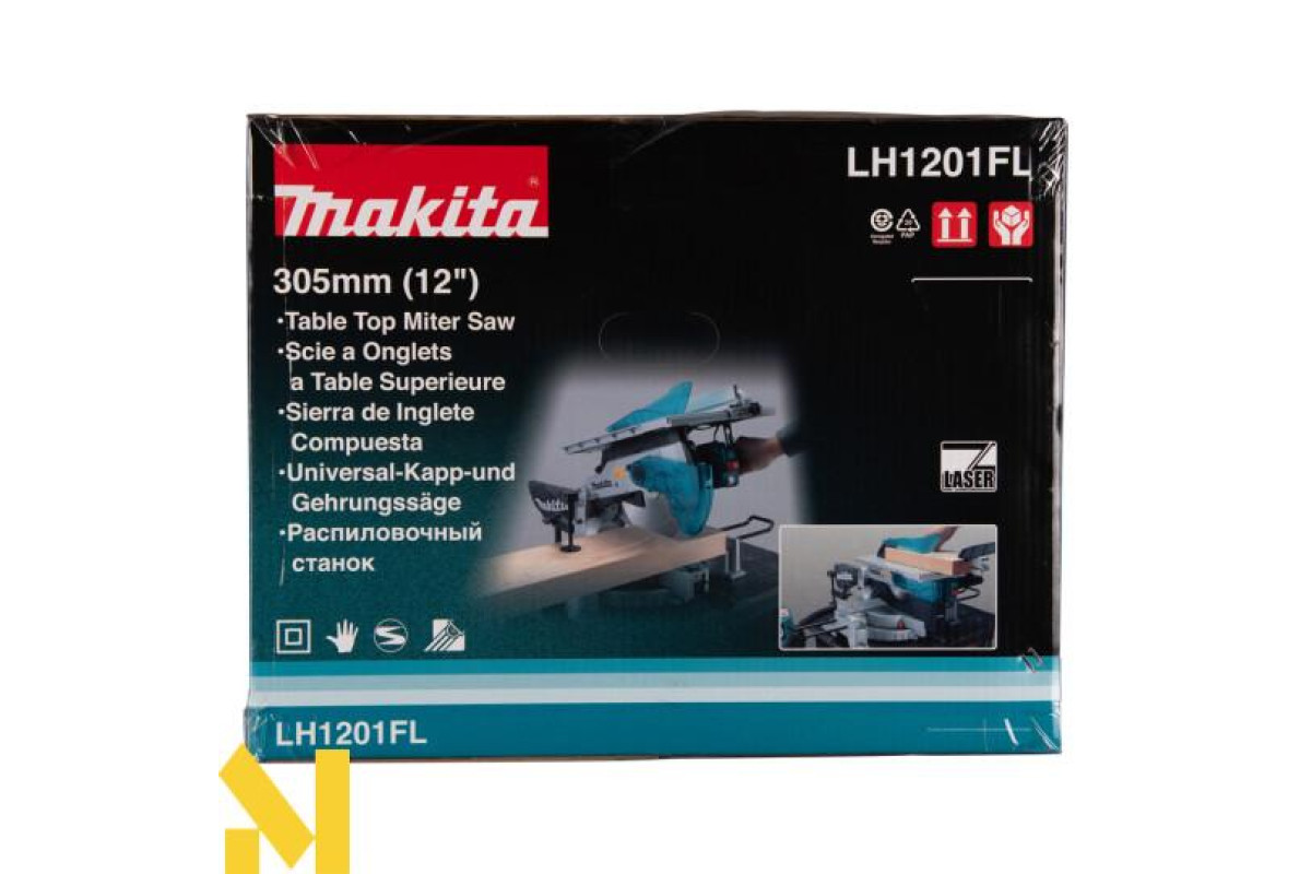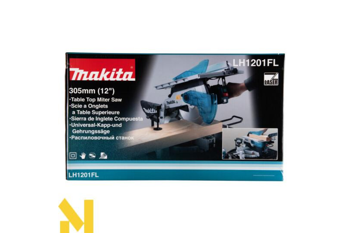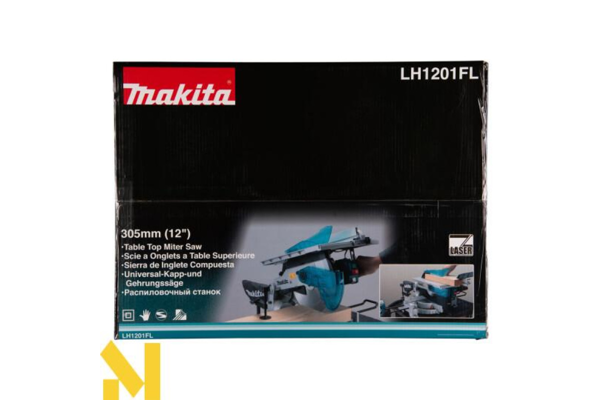 Пила торцювальна Makita LH1201FL - потужний електричний пильний інструмент, що має легку і компактну прекрасно керовану і маневрену конструкцію. Пила торцювання Makita LH1201FL оснащена такими ефективними механізмами, як вбудована світлодіодне підсвічування, лазерна напрямна, що забезпечують акуратний і точний різ глибиною до 52 см. Косий розпил виконується під нахилом вліво до 45 градусів, максимальний розпил вліво під кутом 47 і вправо до 52 градусів. Глибина розпилу під кутом 45 градусів в діапазоні 64х155 мм, під прямим кутом - 95х155 мм. Пила торцювання Makita LH1201FL оснащена пильним диском з діаметром 305 мм і посадковим місцем 30 мм. Це безпечний інструмент, оснащений плавним пуском і захистом від випадкового запуску, який встановлюється на міцний робочий стіл зі сплаву литого алюмінію.
