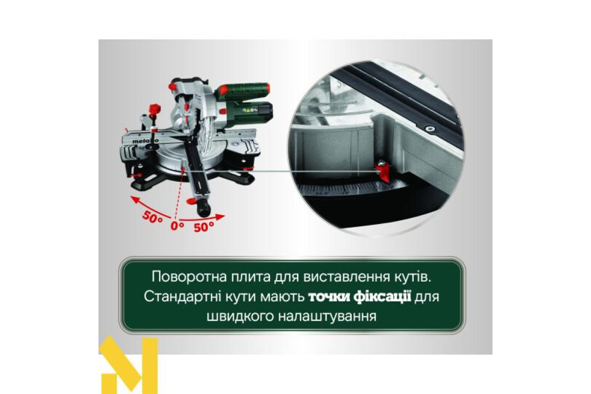 Нахил пилкового полотна від -2 до 47°, завдяки чому можна виконувати зворотні розпили