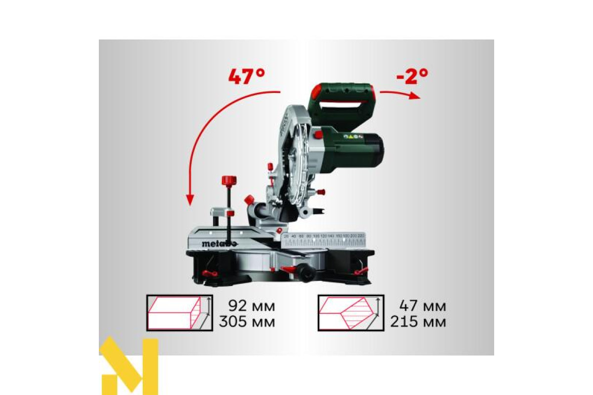 Розмір пропилу 45°/45° | 215 x 47 мм |