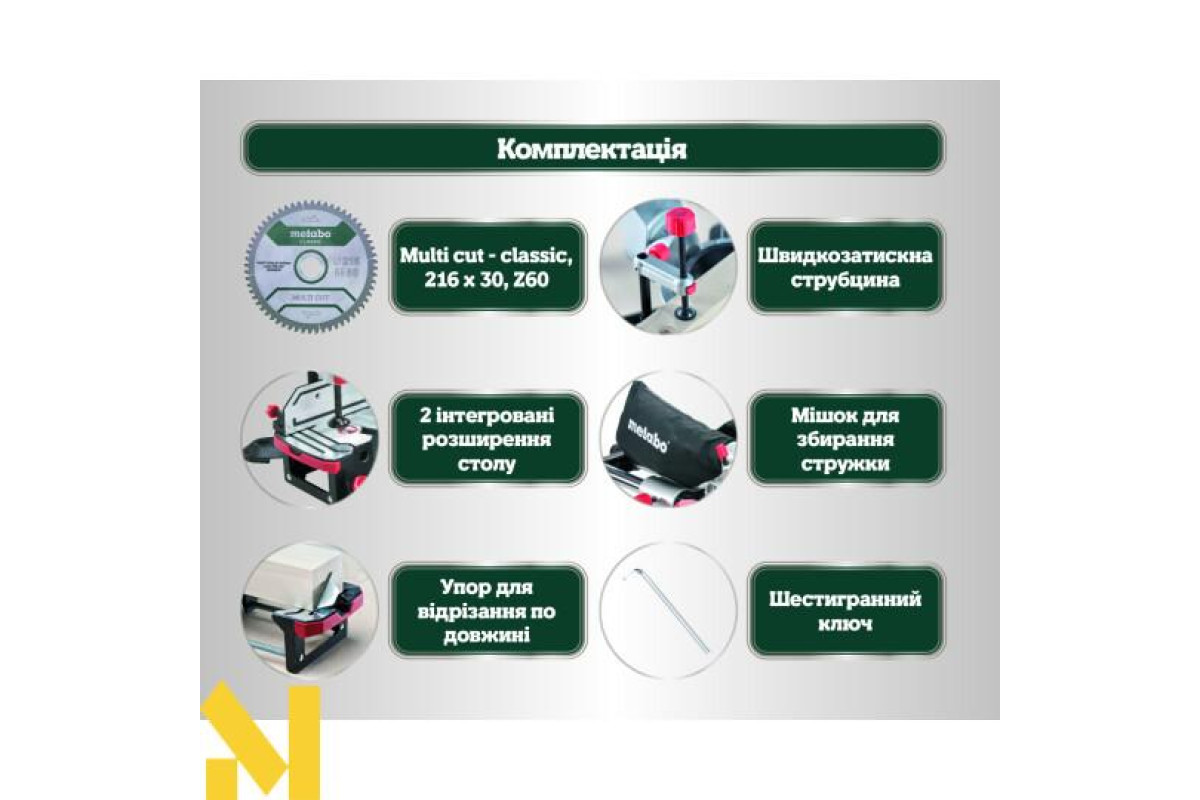 - Станина пилки виготовлена з литого під тиском алюмінієвого сплаву, що гарантує високу зносостійкість інструменту.