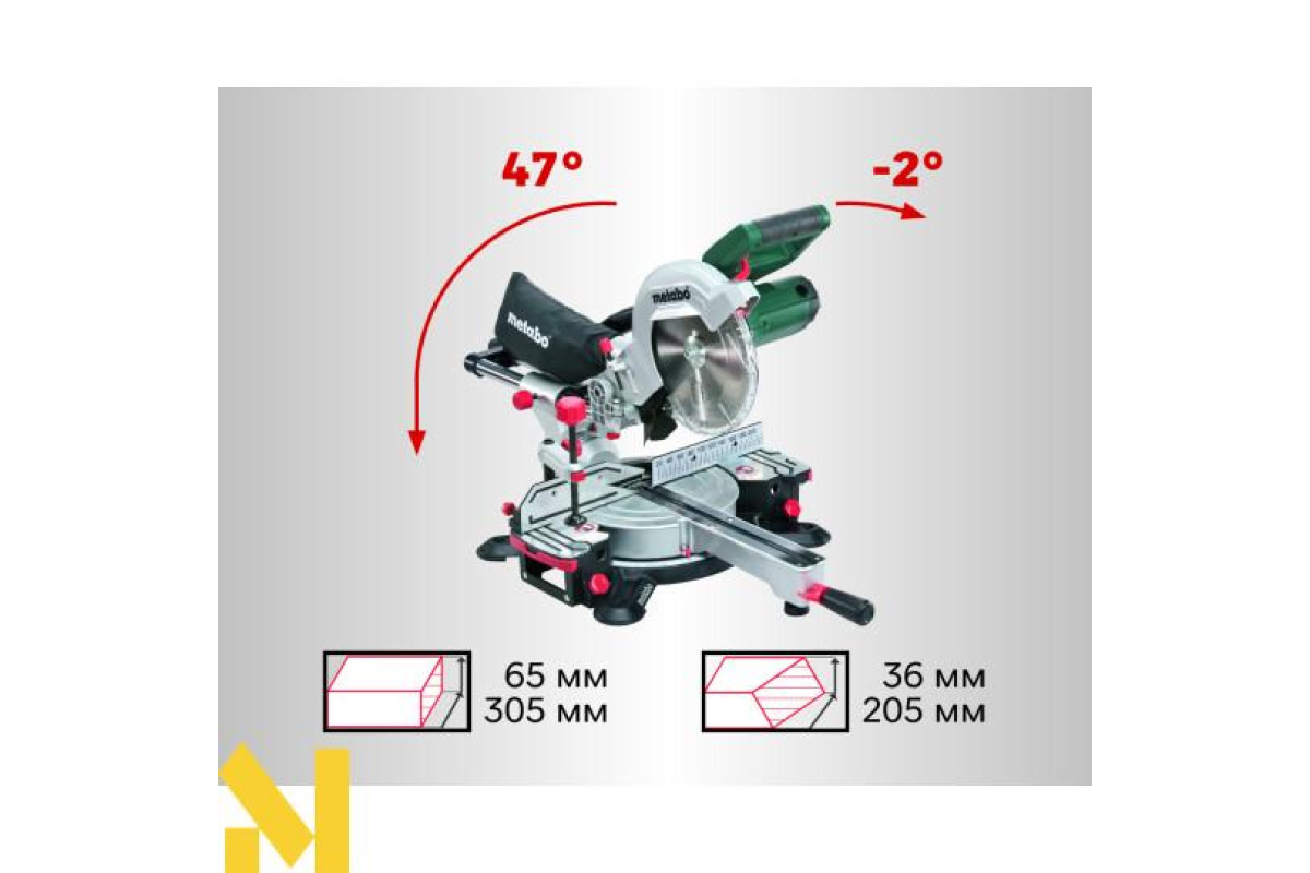 -під кутом 45°/45° 205/36 мм - Кут нахилу пильного головки ліво/право: 47°/0°