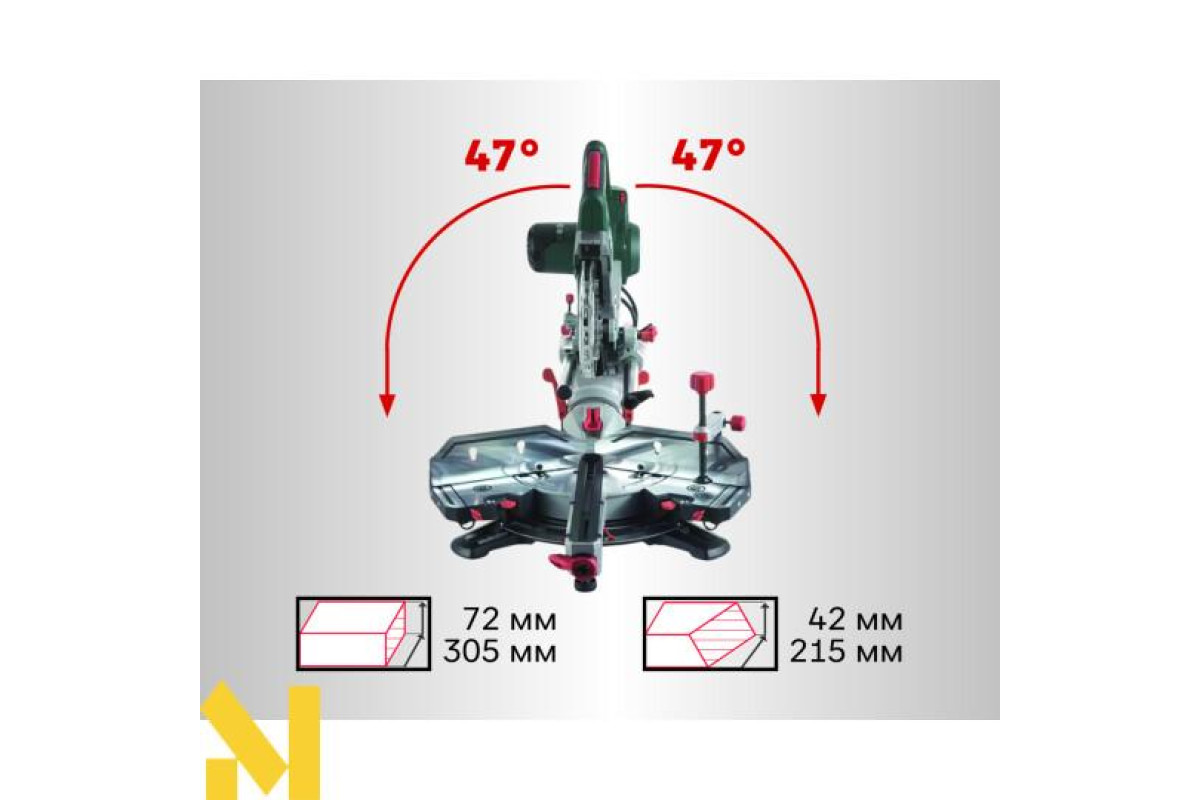 - Кут нахилу пильного головки ліво / право: 47°/47°