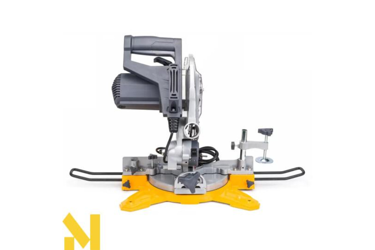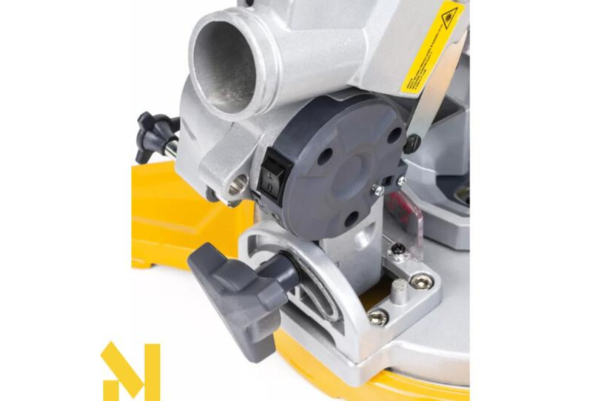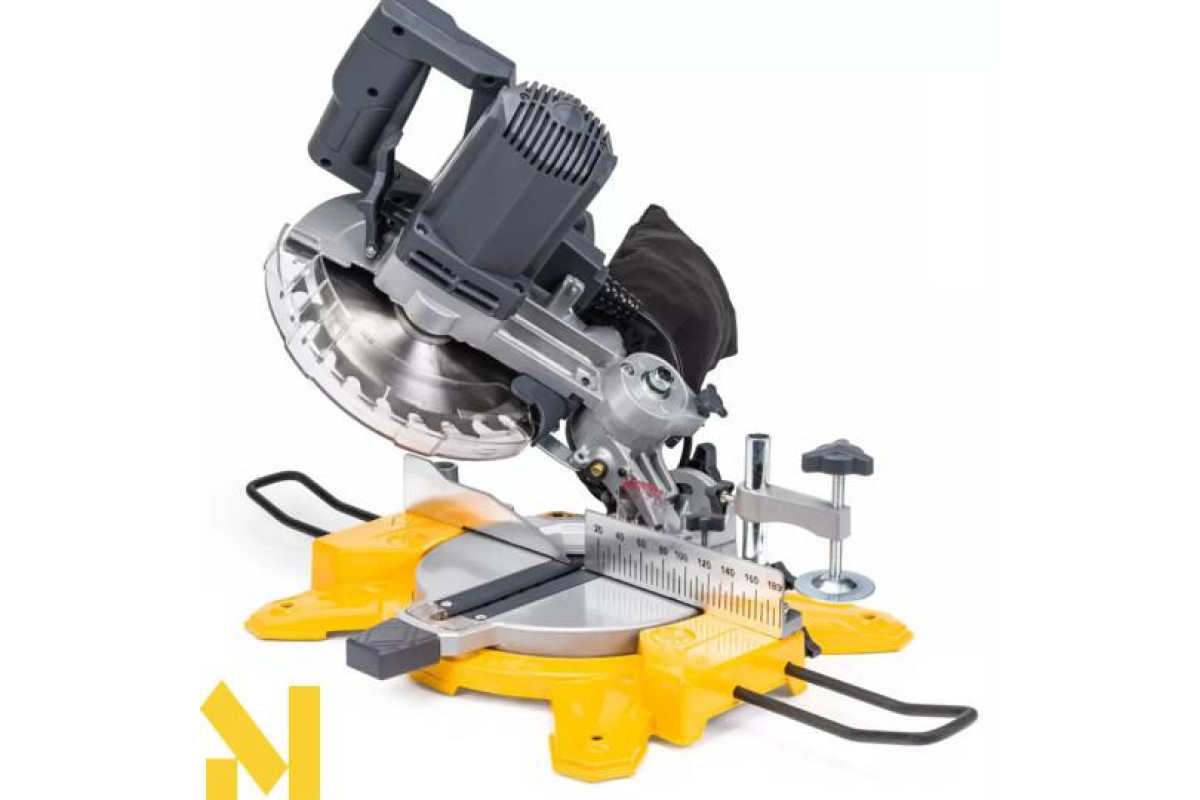 Агрегат дозволяє швидко і точно різати деревину, дошки, панелі тощо. Завдяки нахилу та обертанню головки можливе подвійне різання під кутом. Пила оснащена довговічним двигуном з максимальною потужністю 2100 Вт зі змінними щітками. Лазерна направляюча, яка встановлена в машині, підвищує комфорт і точність при роботі з матеріалом. Живлення здійснюється від двох батарейок LR44.